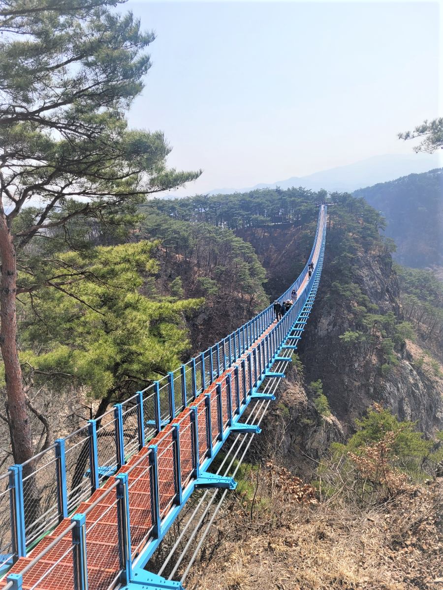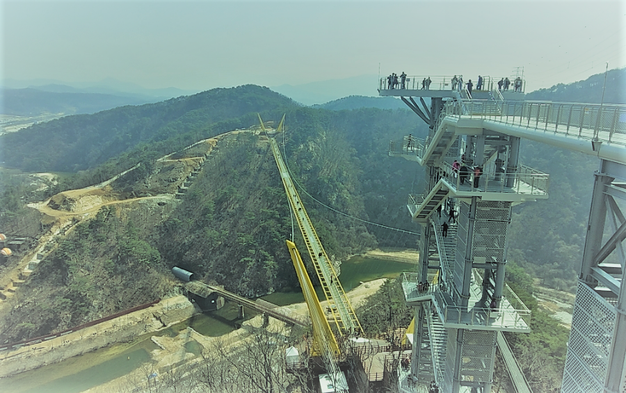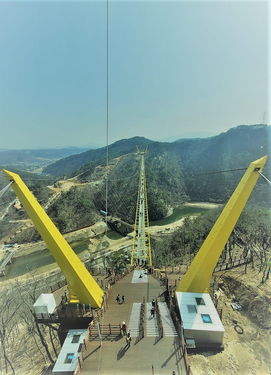 준공하면서 국내에서 가장 긴 보행 현수교로 등장했지만 우리나라에선 지역마다 출렁다리 건설 붐이 일어 그 기록이 언제까지 유지될지는 두고 볼 일이다. 높이도 지상 200m이다.