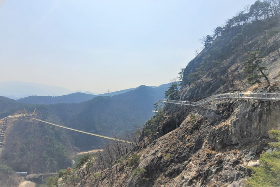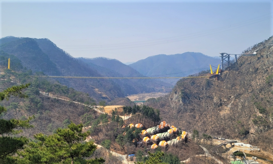 그동안 국내 보행 현수교 가운데 가장 긴 울산 대왕암 출렁다리보다 100m 더 긴 길이 404m로 5분 이상 걸어서 건너게 된다.