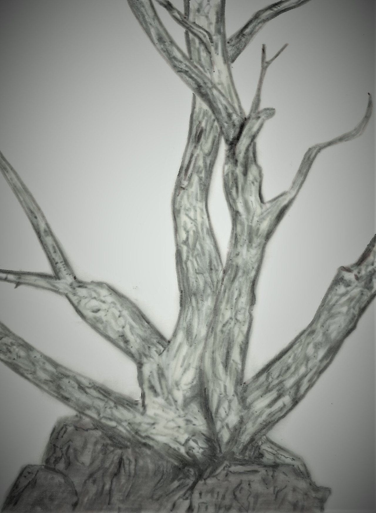 바위에 뿌리내린 소나무가 꼿꼿이 가지를 뻗고 있다