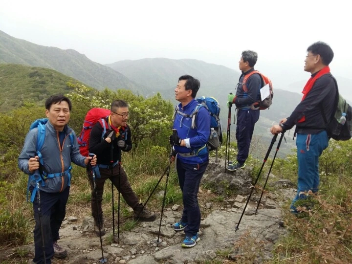 해발 397m의 망산 정상을 동네 뒷산 정도로 생각했다는 몇몇 친구들이 마음을 가다듬는 것처럼 보인다. 청명한 날엔 여기서 부산과 대마도까지 보인다고 하는데 오늘 거기까지 보려 하는 건 과한 욕심일 듯하다. 은근히 걱정했던 습한 날씨가 개는 것만도 감사하다.