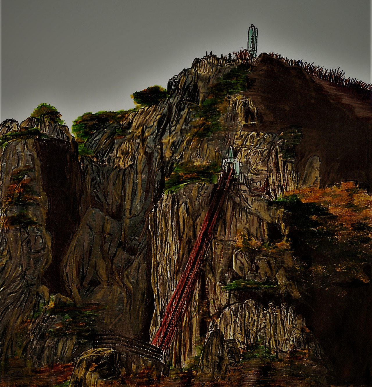 개척 탑이 세워진 대둔산 정상 마천대(해발 878m)는 하늘과 맞닿았다 하여 원효대사가 그렇게 이름을 지었다. 마천대만큼 사람들이 많이 모인 정상도 흔치 않다. 오늘 가을 절정의 대둔산은 아래로 명물이랄 수 있는 금강구름다리와 삼선계단이 울긋불긋한 단풍 속에서 많은 사람을 실어 나르는 중이다.