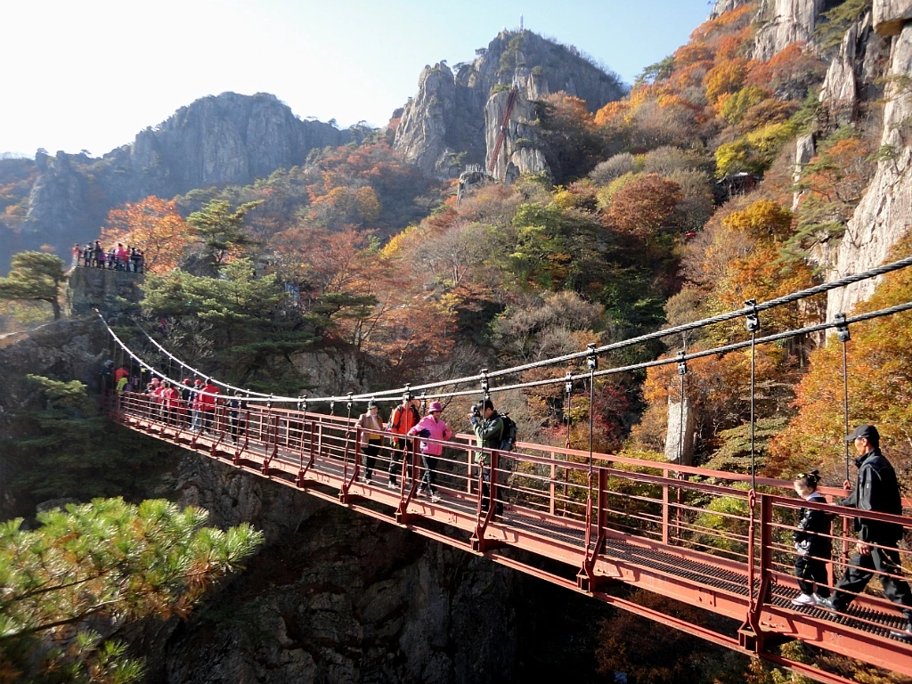 숲과 협곡은 또 어떠한가. 기암괴석과 어우러진 수려한 자연미에 초절정의 단풍까지 곁들이니 그야말로 금상첨화의 특급 산행이라 할 수 있겠다. 등산이라기보다는 관광이라는 말이 적합할 정도로 다리보다 눈이 바삐 움직이게 된다.