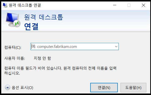이제 다시 <원격 데스크톱> 앱 화면으로 갑니다.