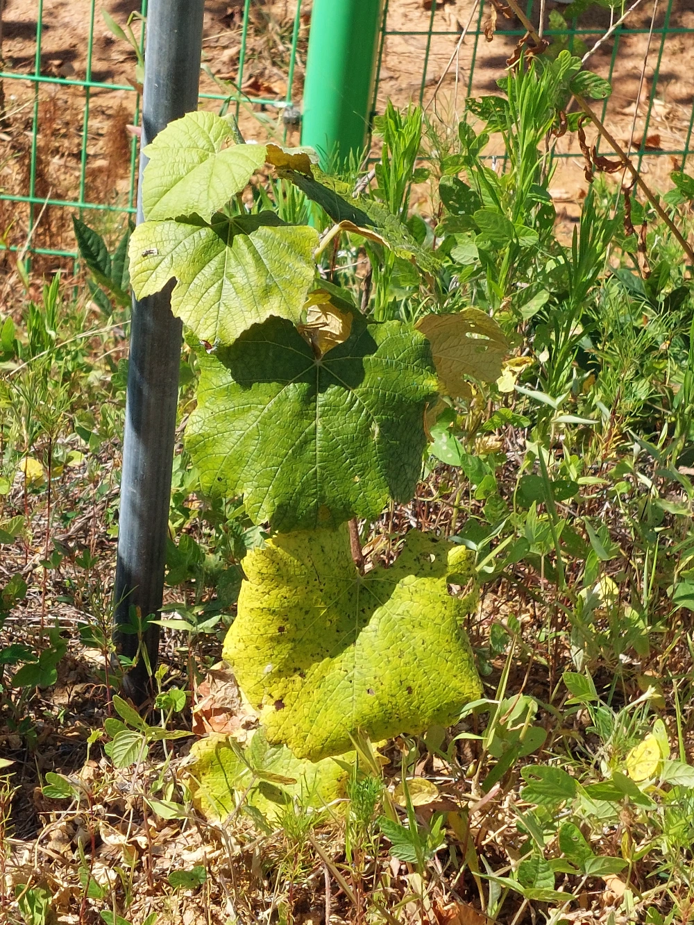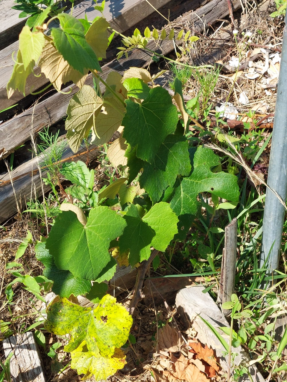 왼쪽은 2번 캠벨 포도, 오른쪽은 8번 거봉 포도입니다. 싱싱하게 잘 살아 있으나 최근 2주 가까이 비가 오지 않아 말랐습니다. 다행히 이틀 전부터 비가 조금씩 내려 이제 죽을 가능성은 낮아졌습니다.