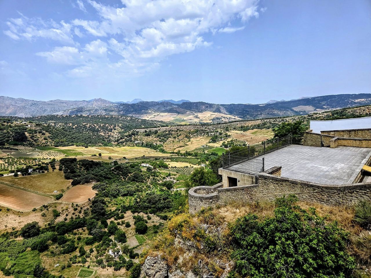 말라가랑 론다는 가깝지만 고속도로가 아닌 산길로 꾸불꾸불 가서 1시간 반 정도 걸린다. 결국 12시 정도에 론다에 도착했다. 정말 덥다. 이럴 때는 절벽으로 가면 된다. 바람이 아주 시원하다. 오른쪽 돌건물은 공연장인데 가끔 실제로 공연을 한다.