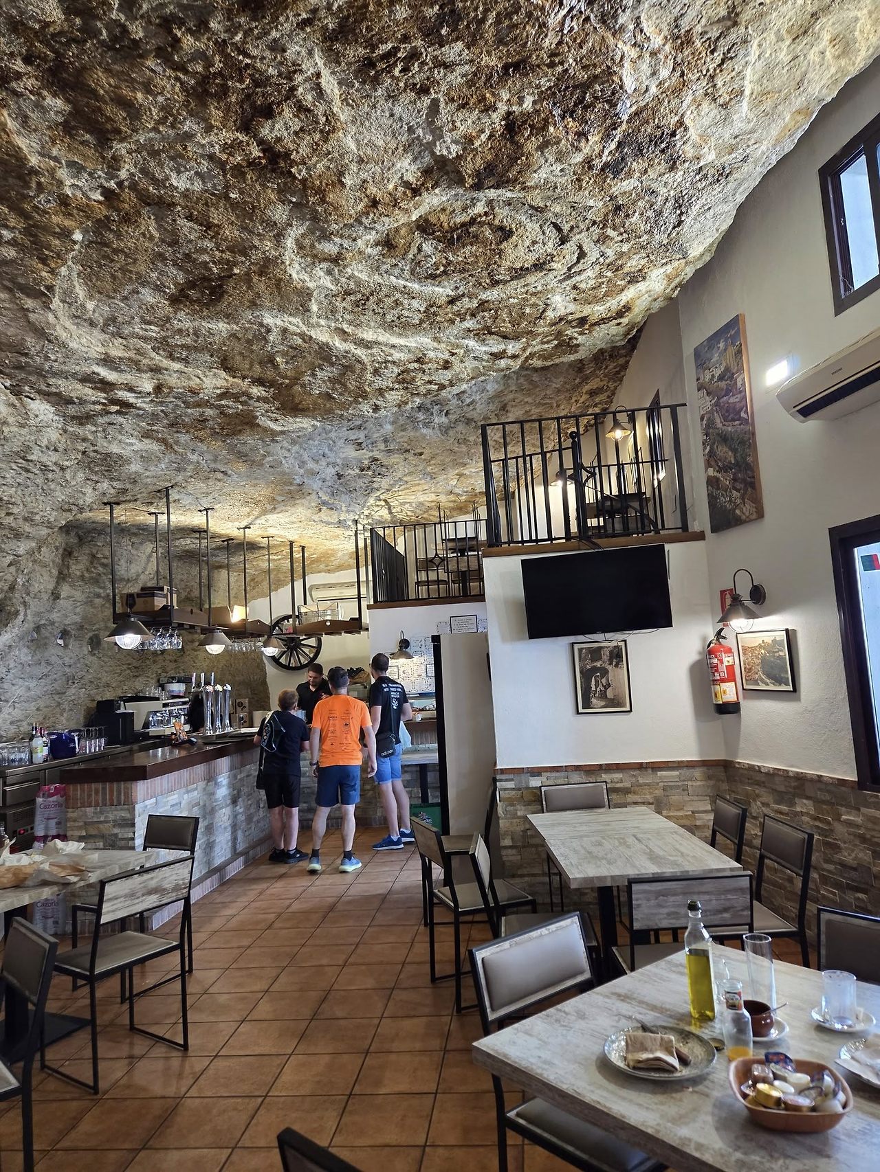 세테닐 데 라스 보데가스에 들려 바위 아래에서 커피도 한 잔 하고 화장실도 이용한다. 바위 아래라서 아주 시원하다.