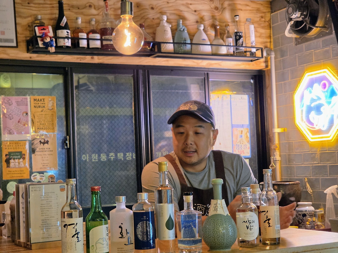 다양한 전통주를 설명하시는 친절한 사장님. 스파이가 한 명 숨어있다.