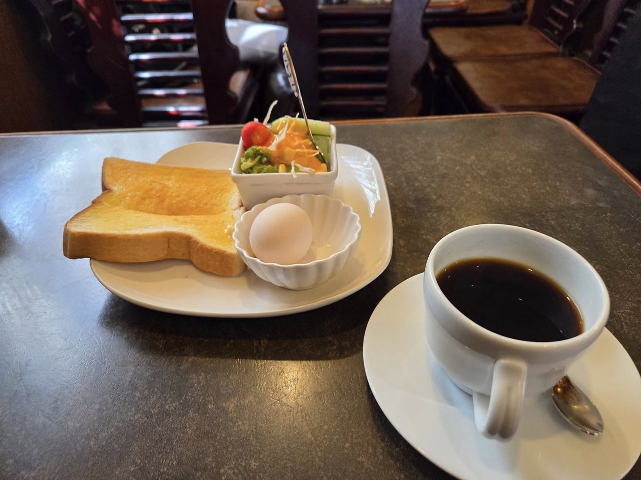 내일이 학원 개학이니 오늘은 오사카 시내구경이나 하자. 일단 다방에서 모닝커피를 주문하자. 일본은 한국보다 빵 소비량이 훨씬 많다. 그래서 동네 다방에도 토스트를 흔하게 판매한다.