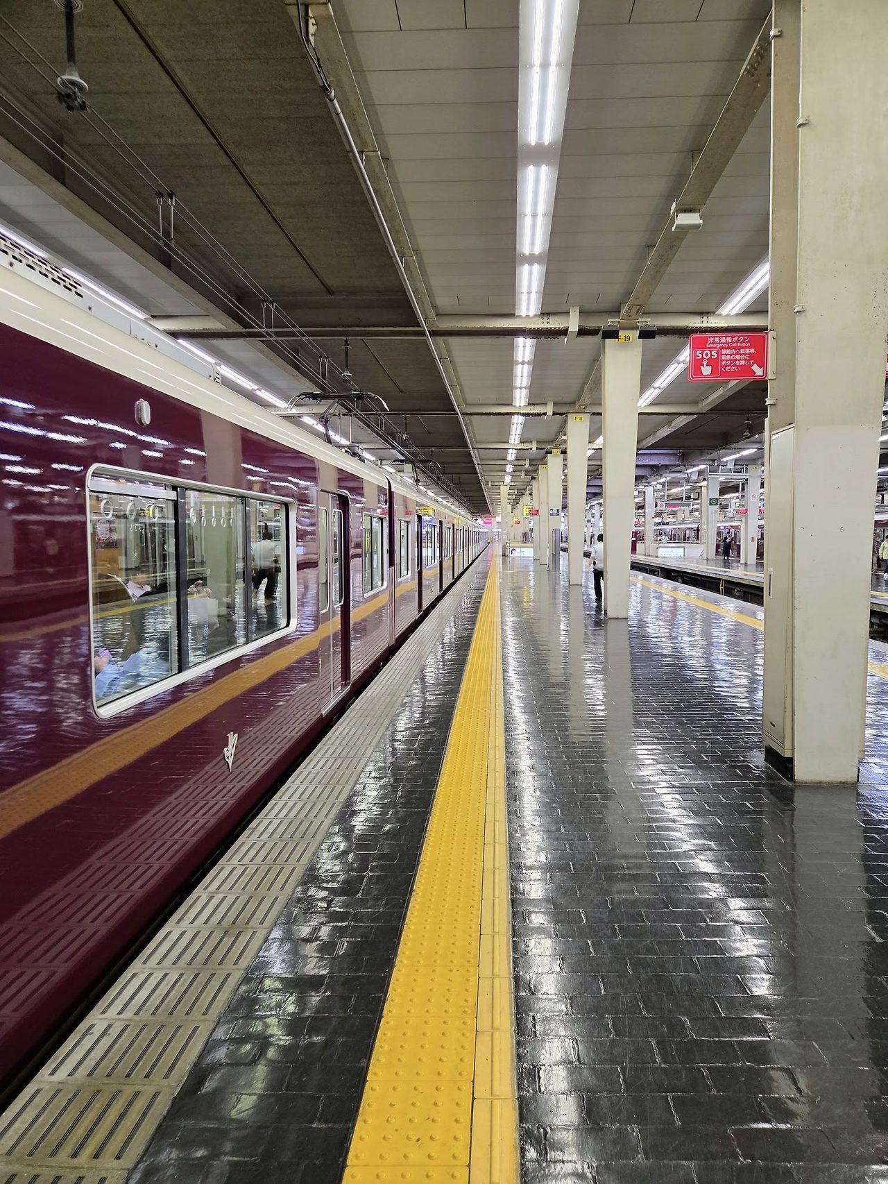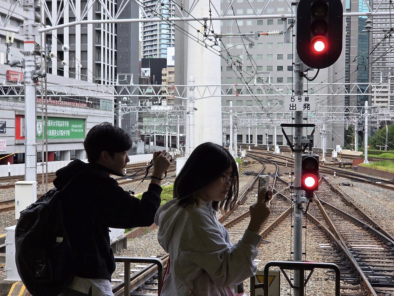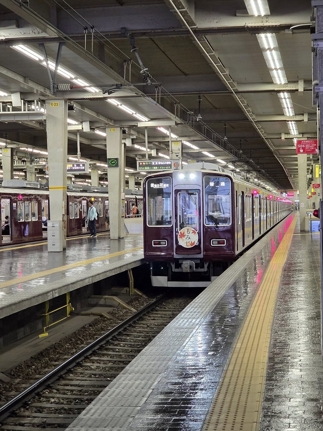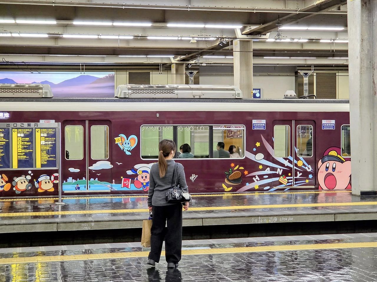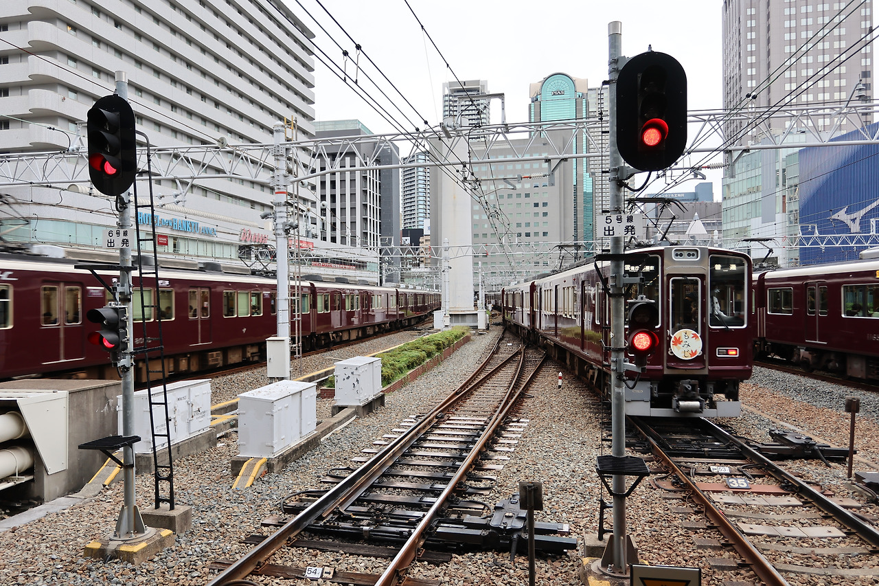 도착하면 사방에 같은 색깔의 한큐전철들이 다닌다. 3개의 노선에서 9개의 승강장으로 기차가 들어오기 때문에 철덕들이 사진을 찍으러 이곳으로 많이 온다.