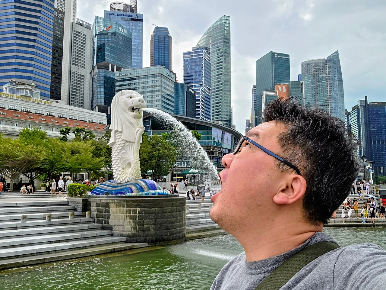 싱가포르는 2월에도 한여름이다. 싱가포르의 상징인 머라이언 동상.