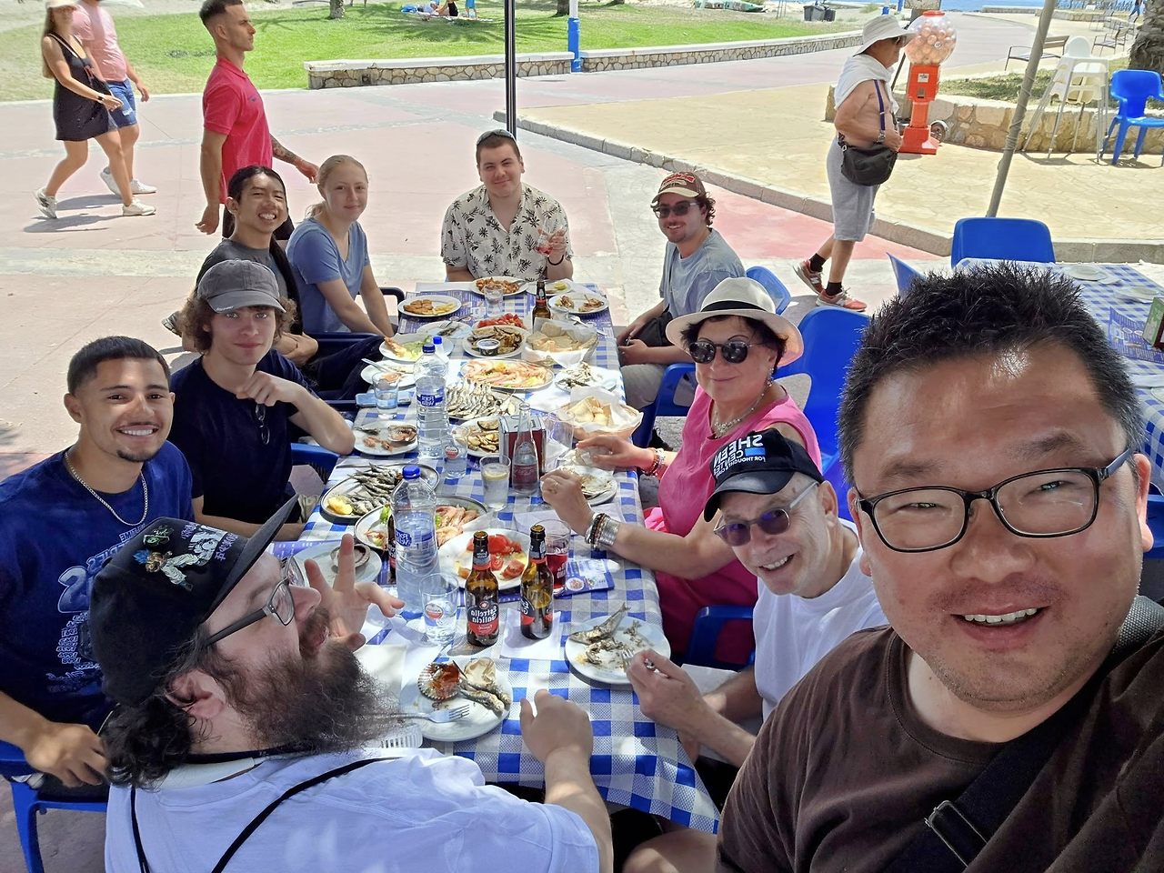 도착하고 다음날은 푹 쉬고 싶지만 열정이 넘치는 인솔 교수님이 바닷가에 가자고 해서 점심은 바닷가식당에서 먹었다. 말라가는 어촌도시라 해산물이 굉장히 신선하다. 다만 일요일은 어부들이 쉬는 날이니 월요일은 피하자. (할아버지는 교수님이 아니라 학생임.)