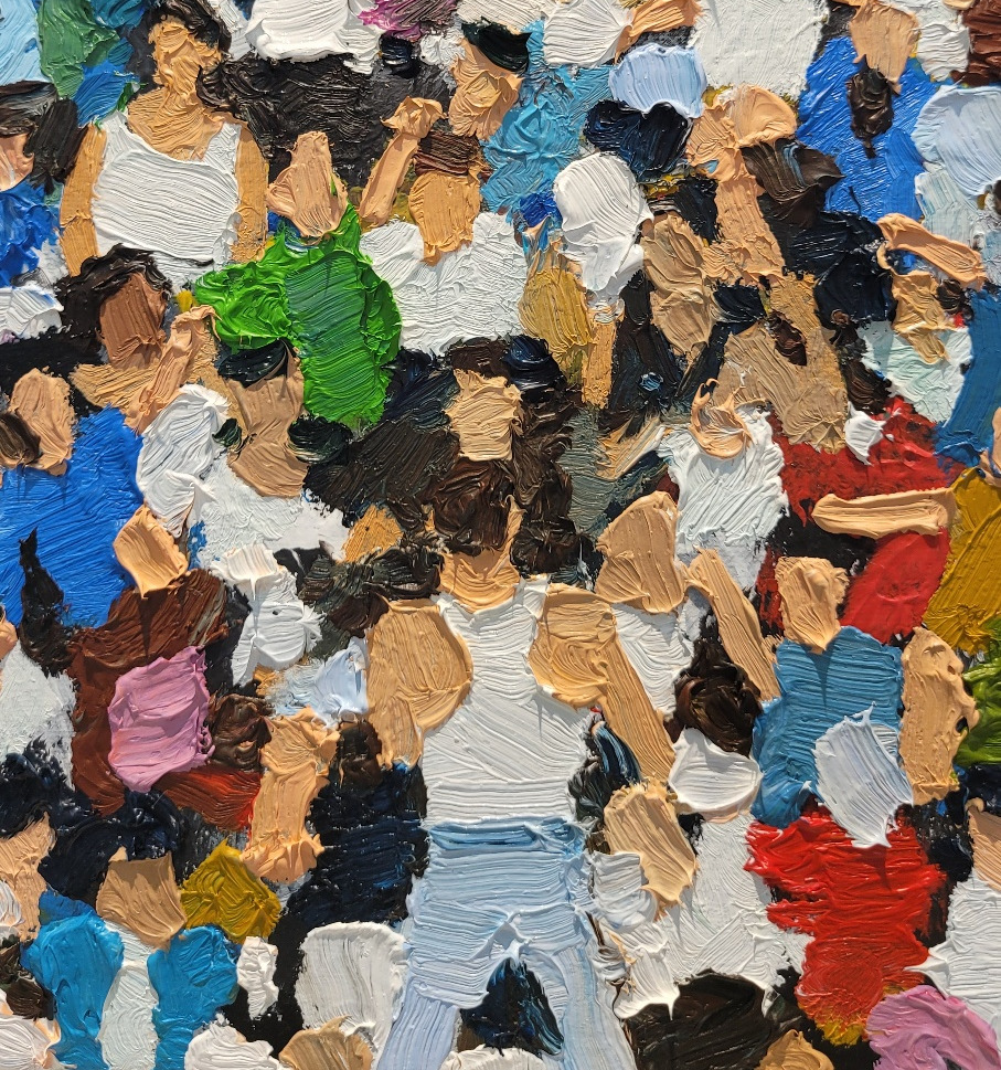 이전 그림에는 섬세함이 숨어있었다면, 이 그림은 거친 느낌이 들었다. 가까이서 봤을 때, 솔직히 알아보기 힘들었다. 저기 서 있는 나시에 청바지를 입은 사람이 가수고, 여긴 콘서트 현장이구나 만 알아볼 수 있었다. 퀸의 프레디 머큐리가 생각나는 그림이었다. 멀리서 보니 관중들이 보였다.