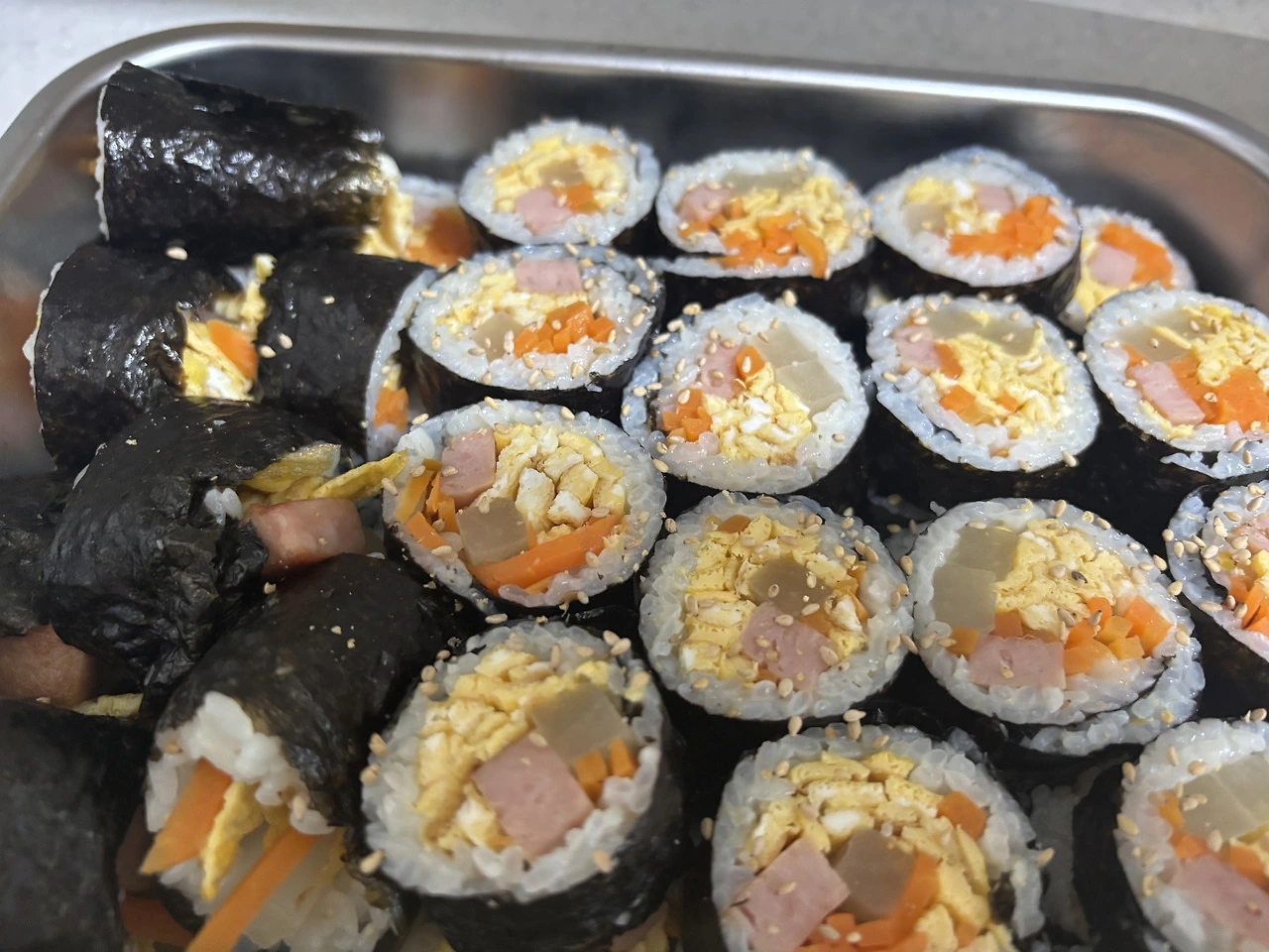 스팸, 당근, 계란, 밥, 김밥용 김.