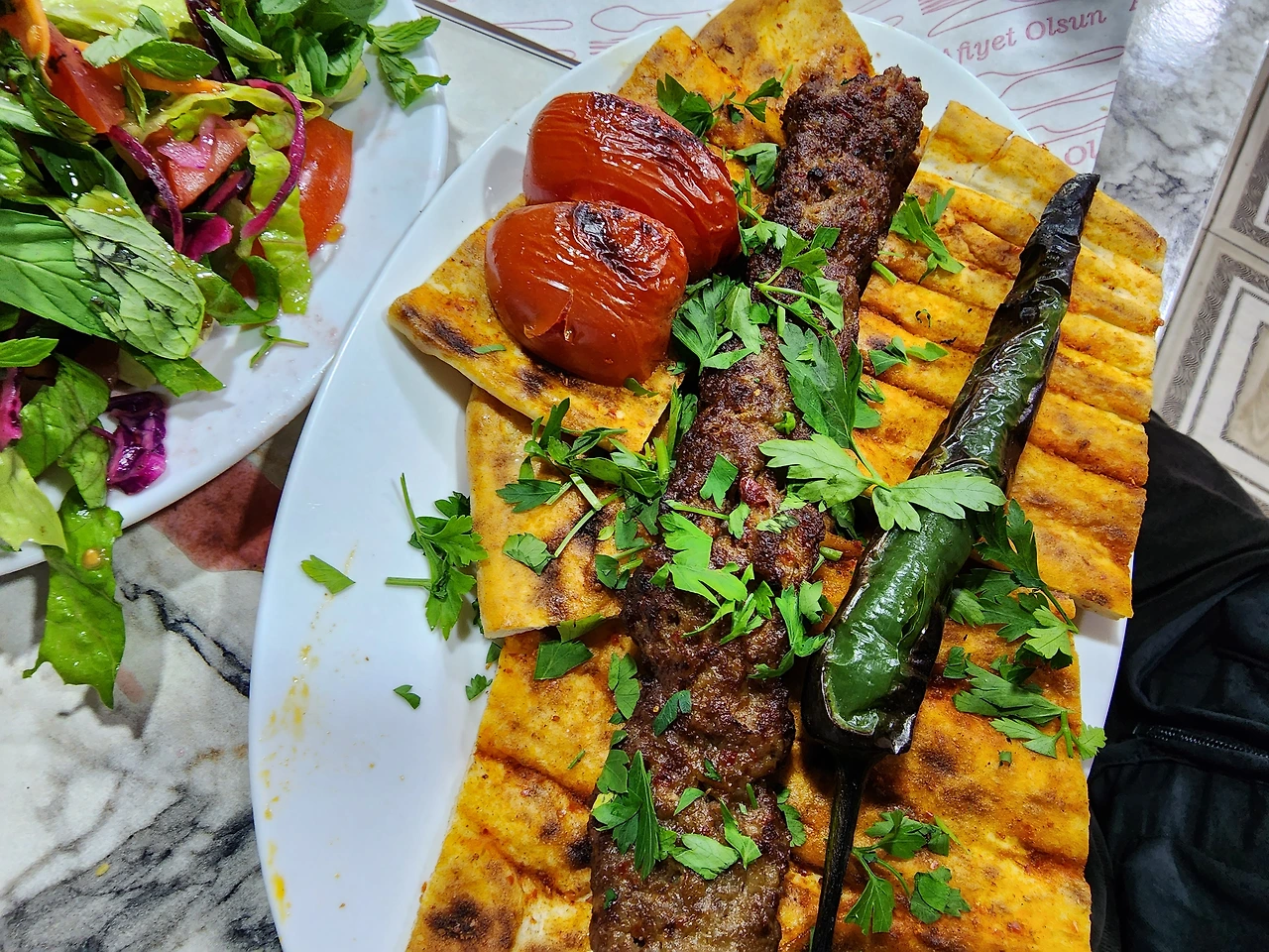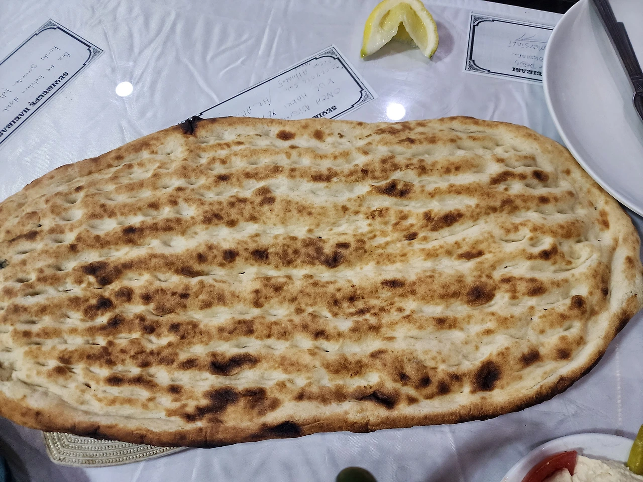 라마단 식단은 정말 진수성찬이었다. 샐러드에 양고기 닭고기 소고기 철판구이? . 마지막 커피와 홍차 그리고 디저트까지 먹으니 왕의 식탁이다. 거기에 생음악 까지 . 물론 우리에게 익숙한 음악은 아니었지만 흥을 돋구어 주어 좋았다. . 지난번에도 900리라에 먹었기에 그렇게 비싸지 않을줄 알았다. 계산을 하려니 거의 2000리라(65불)가 나온다. 이스라엘 생각하면 비싼건 아니지만 지난번 먹었던걸 생각하면 너무 바가지 쓴 느낌이라 한동안 실갱이 끝에 인상 찡그리며 돈을 지불하고 나왔다. 하지만 터키에 와서 처음 정식으로 먹은 식사라 즐겁게 먹었던 최고의 식사였다.