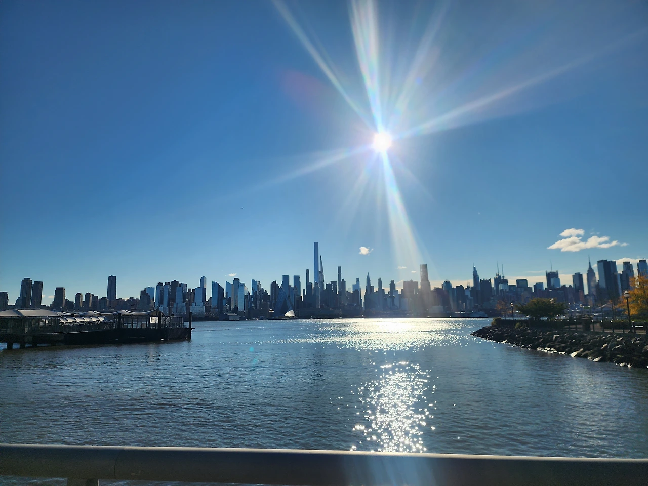 구글 검색으로 잘 확인한후 중간에 내렸다 ( 다음엔 뉴욕까지 버스로 가보려한다) 거기서 기차를 탔다. 타고보니 다른 방향 기차다. 뭔가 기차 색이 잘 구분이 안간다. 색보다는 가는 방향을 잘 보고 타야한다. 다시 역으로 돌아 내려 다른 열차를 탔다. 이번엔 제대로 돌아 뉴저지에서 페리를 타는 지역으로 가는 2불짜리 배를 갈아탔다. 강을 건네주는 배다.