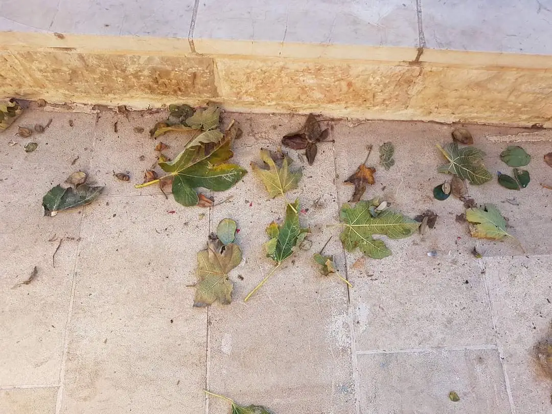 아침에 남은건 옆집에서 날아온 무화과잎사귀.