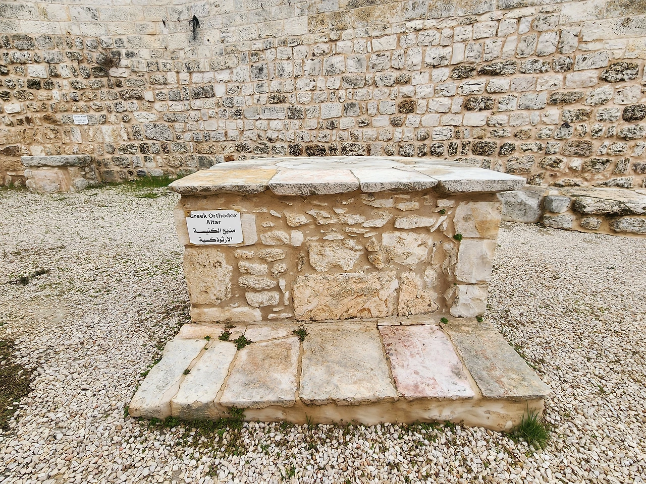 그 안에 왼발을 올려놓으면 딱 그 크기의 왼발 자국이 폐어있다.그것도 이 승천교회를 지키는 아랍 무슬림이 그렇게 우리에게 일러준다.
