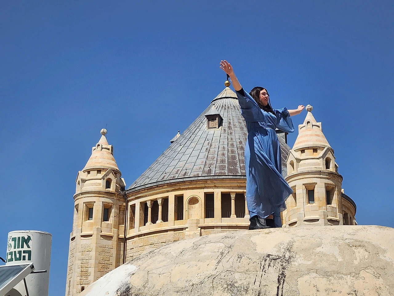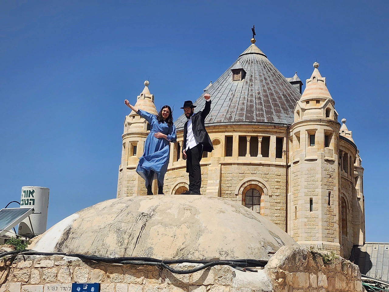 마침 유대인 커플이 사진을 찍으려고 마가의 다락방 옥상 위에 조금 더 높은 지붕 꼭대기로 올라가 사진을 찍어준다. 우리에게도 전화기를 건네며 찍어달라한다. 우와 저런 남친 만나면 여성도 간이 커야한다. 아름다운 커플 아름다운 예루살렘이다.