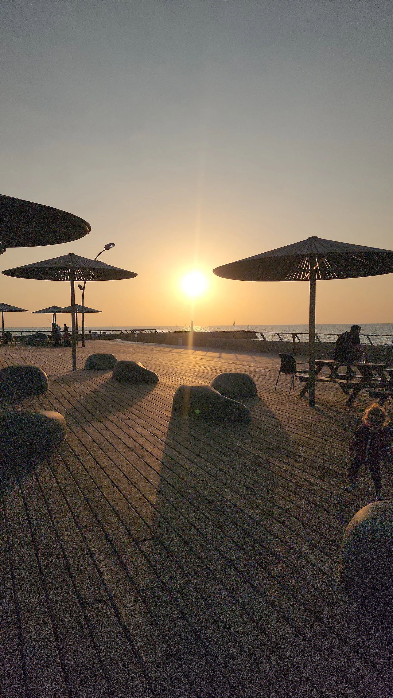 화기애애한 분위기에서 검사받고 나왔지만 역시 쉽지 않다. 그래도 아는 시모님도 찍었다고하니 나도 해볼만하다 싶어 참고 찍었다. 두번 다시 안하고 싶다. 잘 먹고 운동 열심히 해서 건강 유지해야지 . 이런 검사흘 통해 경각심을 갖게 되는듯하다. 끝나고 집에 가려니 2시간이 넘는다. 퇴근시간이라 그렇다. 인근 바닷가에서 금식후 첫 식사를 했다. 나보다 남편이 더 행복해한다. 나는 소화력이 떨어져 조금씩 천천히 먹고 있다. 해질 무렵 텔아비브는 근래에 처음이라 너무 좋다. 행복은 먼 곳에 있지 않다.