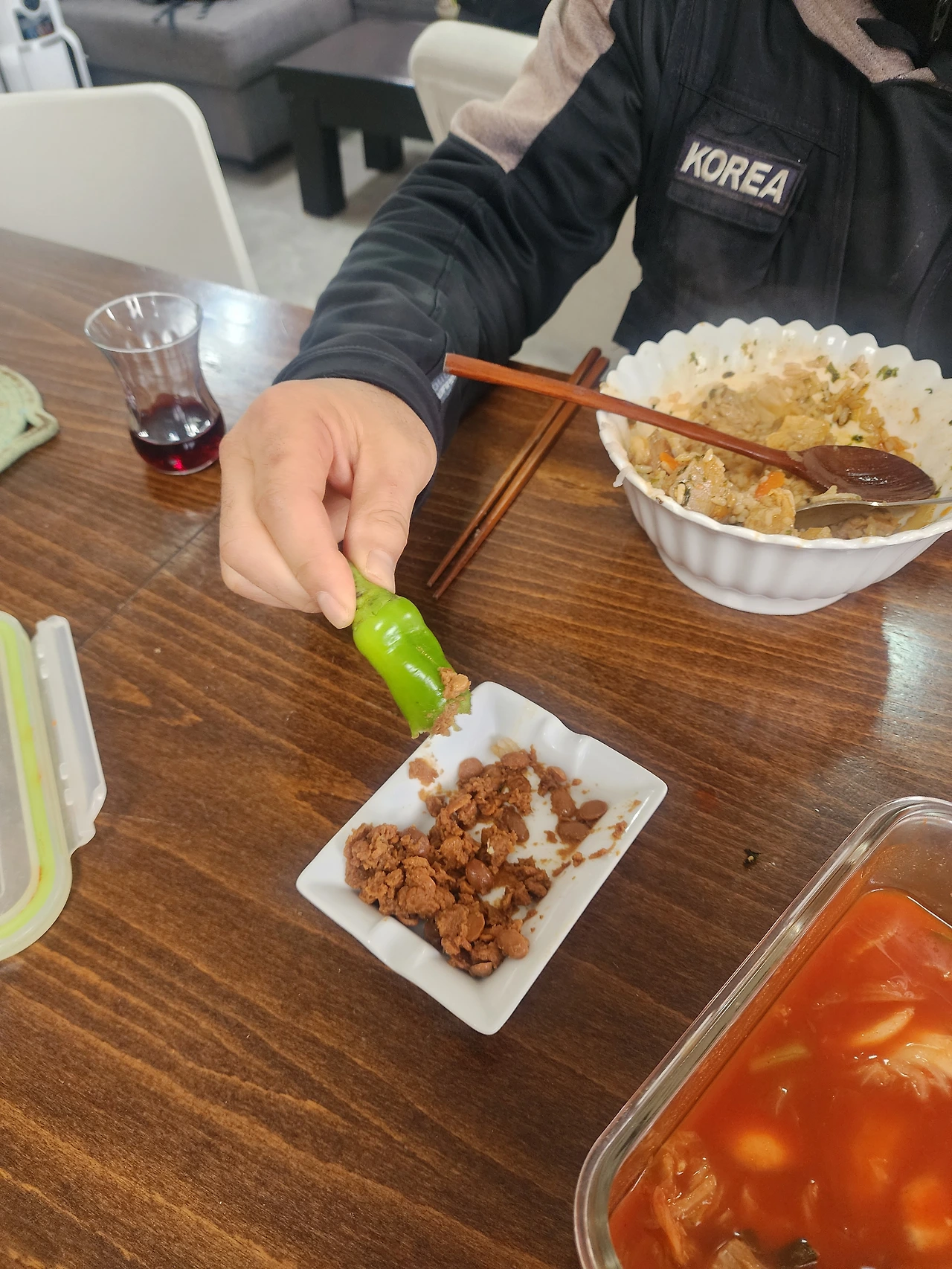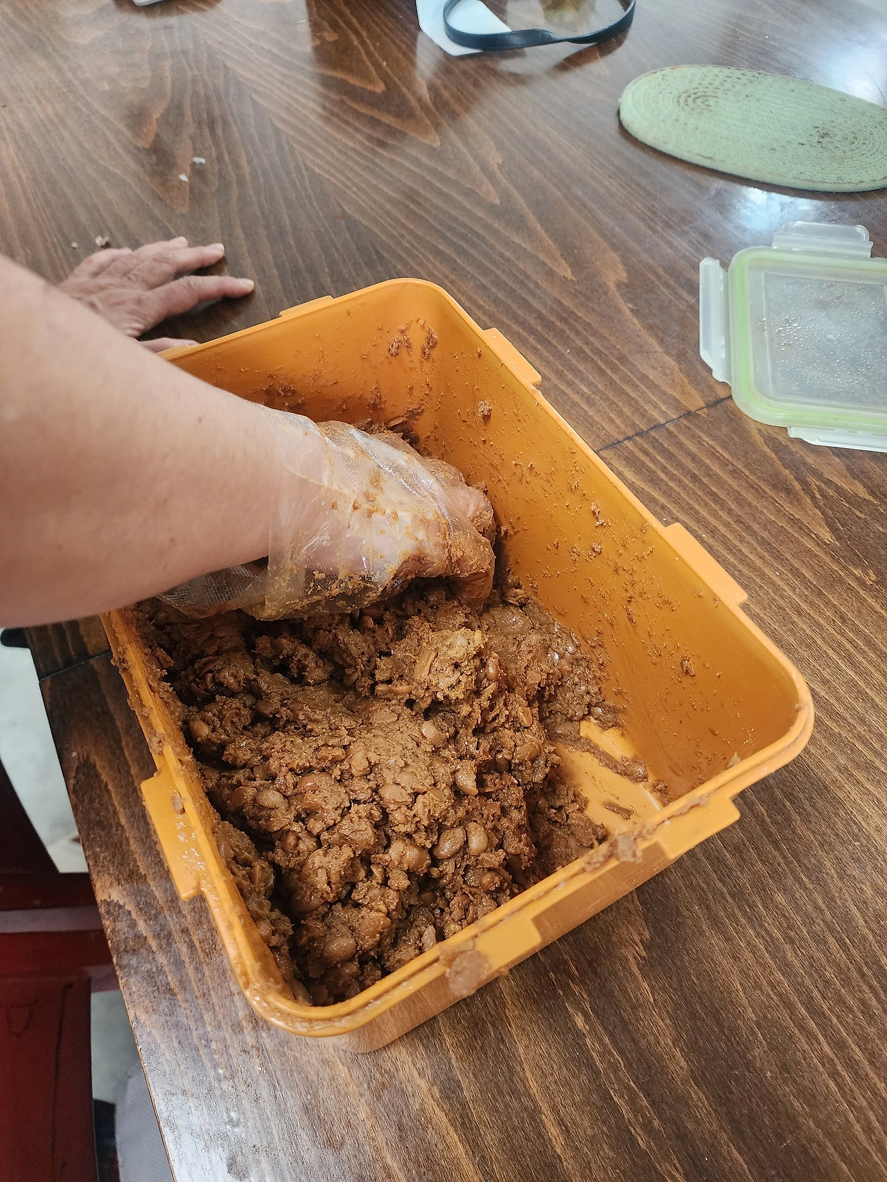 잊고 살다가 다음주에 또 나가야해서 이번주에 열고 장가르기를 했다 (된장과 간장 사이에 막을 해서 위부분은 간장 아랫부분은 된장으로 나뉘어진다). 된장이 무척 짠데 메주콩과 어우러져 정말 맛있다. 남편이 된장에 고추를 찍어먹더니 더 달란다. 고향 생각나나보다.