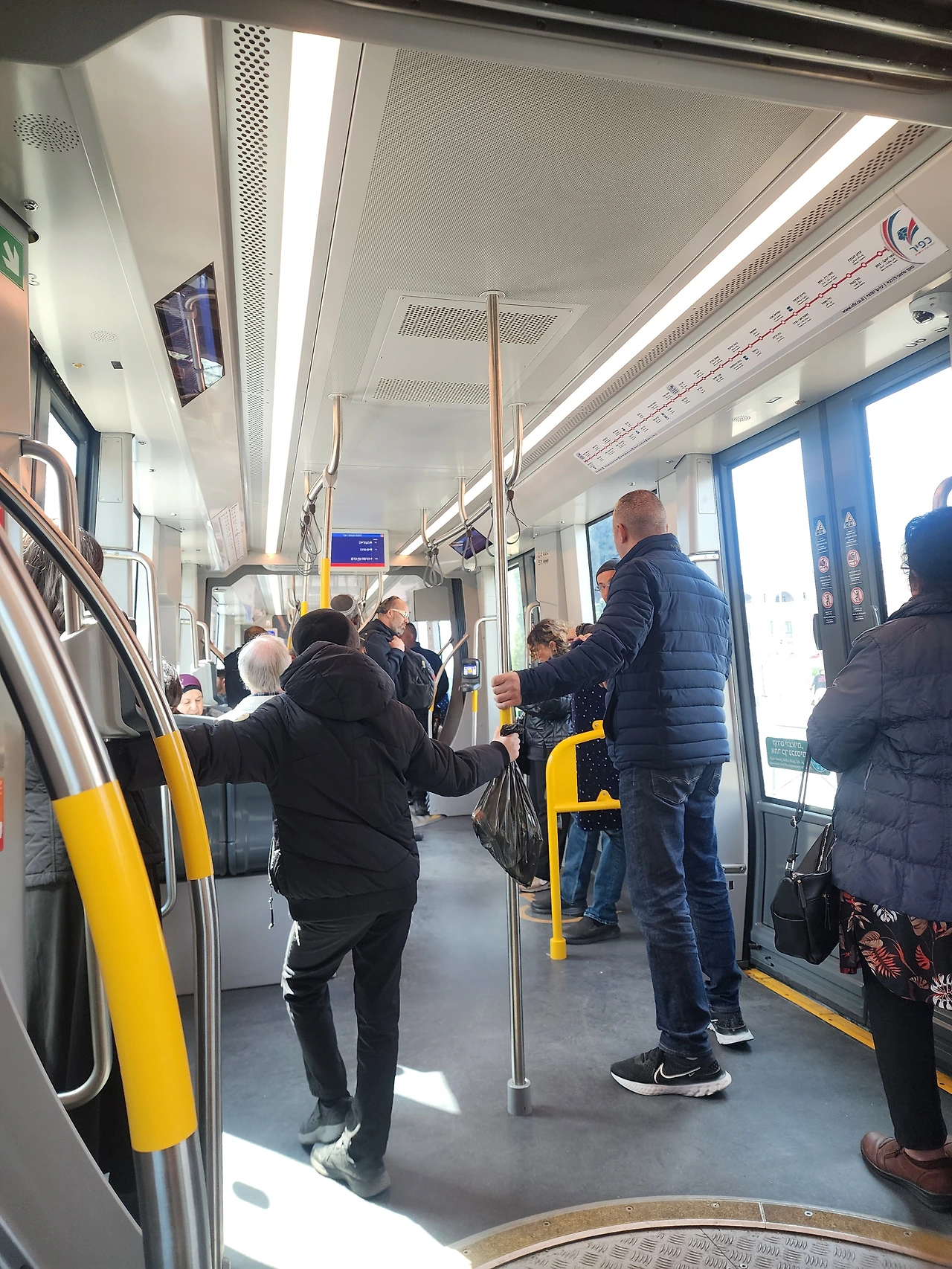 트램안에도 사람들이 평소보다는 덜해도 여전히 이동하는 사람들이 많다.