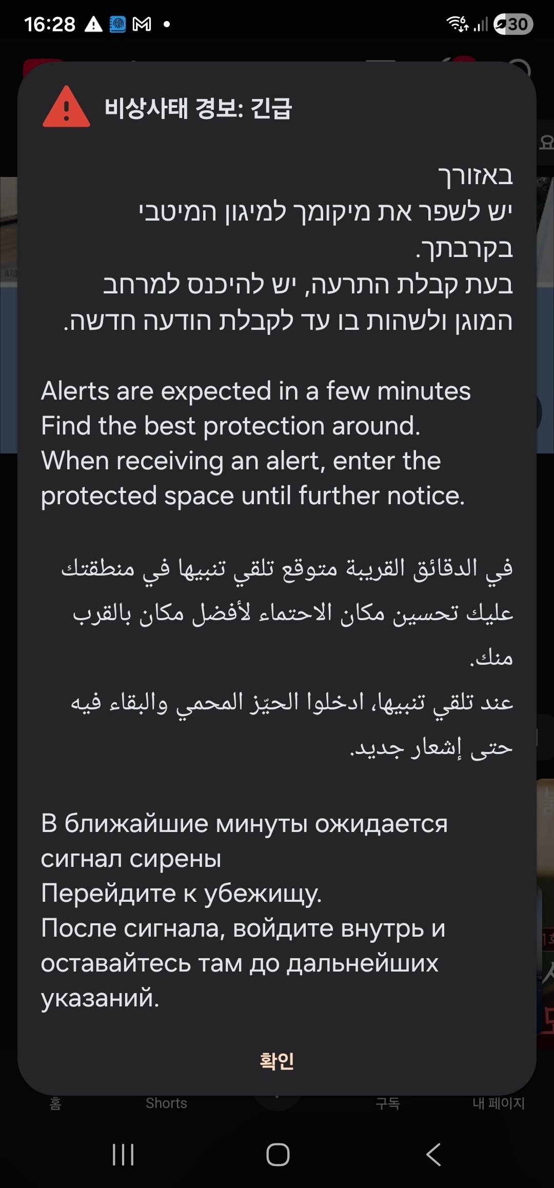 다행히 먼저 전화로 경보음이 뜨고 몇분뒤 싸이렌이 울린다. 우리가 방공호에 들어갈수 있는 시간을 버는 것이다. 두바이에서 공습을 받은 한국인은 싸이렌 소리를 듣지 못했다고 한다. 그 나라는 이런 공습에 방어하는 체제가 없는 것이다. 그것에 비하면 이스라엘은 얼마나 잘 되어 있는지 말이다. 그나마 감사한 일이다.