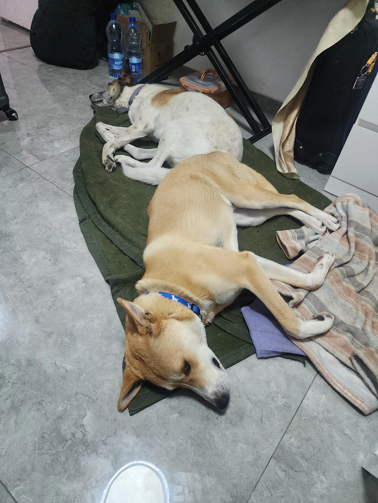 싸이렌이 울리면 개들도 알고 방공호로 들어온다. 소리에 민감한 아이들이 펑펑 떨어지는 파편 소리에 시끄럽게 짖어댄다. 어제 밤에는 피스갓제브 근처 라못에 파편이 떨어져 지진이 난듯 땅이 울렸다. 남편이 있는 미슈르 아두밈 근처 마알레 아두밈에도 파편이 떨어졌다. 남편이 느끼기에 바로 집 근처에 떨어진듯했다고 한다. 워낙 크기에 다른 지역에 떨어져도 바로 코앞에 떨어진듯 느껴진다 .
