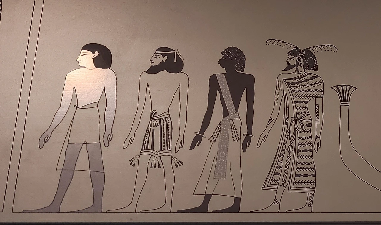 이집트 벽화를 유심히 보면 물건 그저 천으로 주요 부위를 가리는 정도이긴 하지만 그 길이와 매듭차이로도 그의 신분과 어느 나라 사람인지를 알수 있다.