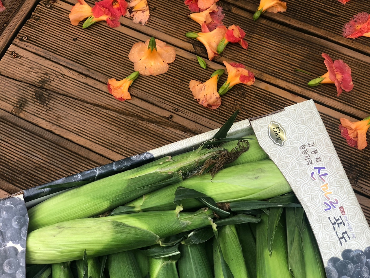 옥수수는 수확하고 바로 쪄 먹어야 제일 맛이 있다. 알이 탱글탱글 윤이 난다. 소금이나 뉴슈가를 넣고 옥수수껍데기도 조금 붙인 채로 삶는다. 담백하고 쫀득하다. 가을에 재배한 옥수수는 냉동옥수수로 만들기도 한다.