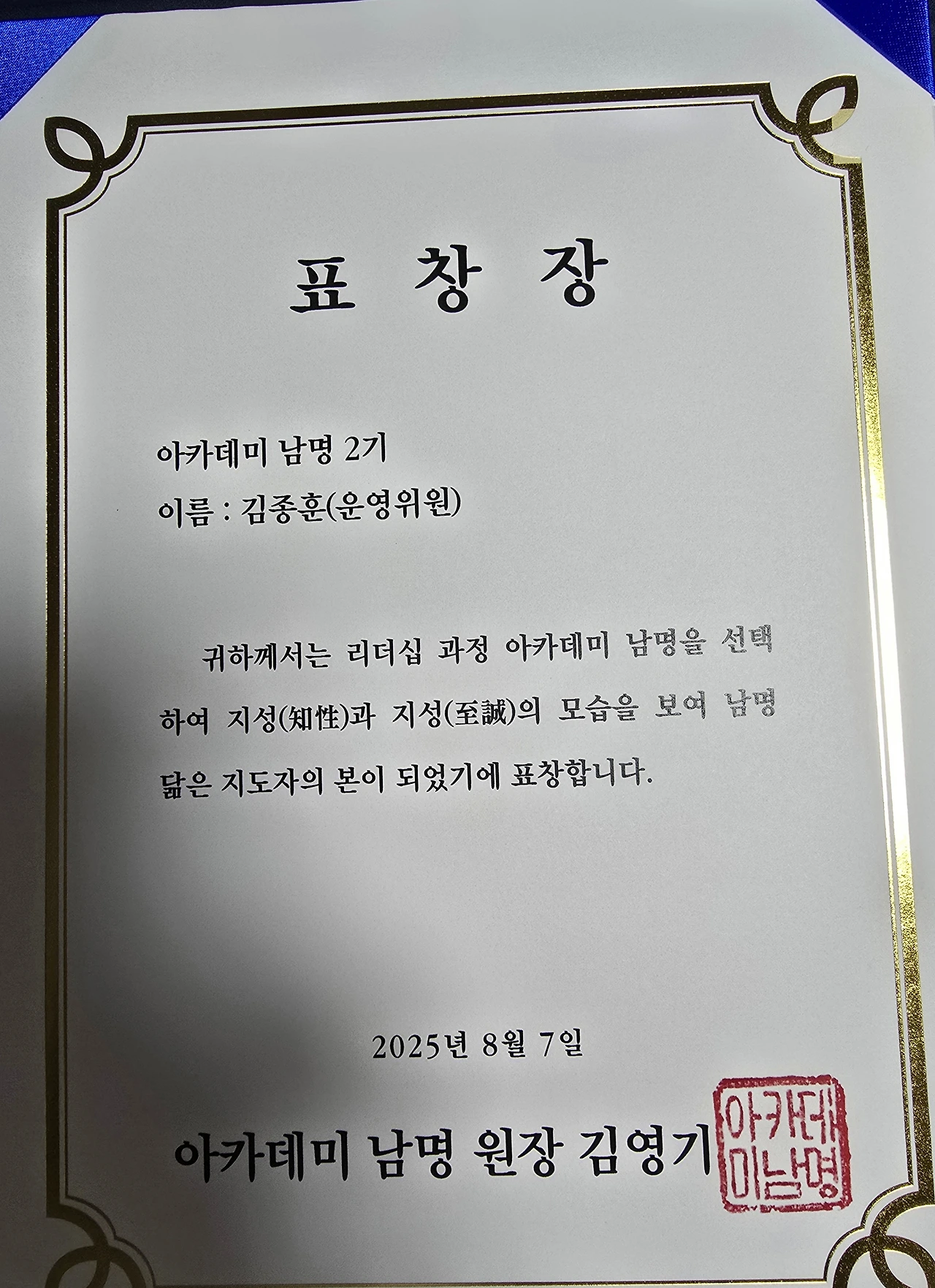 아주 오랜만에 상장을 다시 펼쳤습니다. 그날의 박수 소리가 잦아든 뒤, 이 종이는 한동안 책장 사이에 눕혀 있었습니다. 오늘 다시 꺼내 보니 상장은 증명서가 아니라 거울이었습니다. “나는 이 이름값만큼 살아왔는가?”—질문이 먼저 서고, 다짐이 뒤따랐습니다.