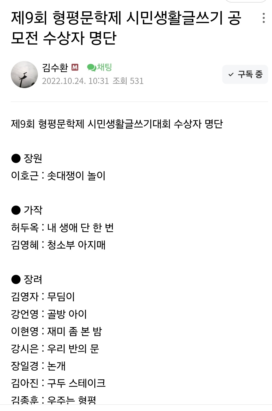 몇 해 전, 형평문학제 생활글 공모에서 저는 ‘장려’의 격려와 함께 이런 취지의 코멘트를 받았습니다.