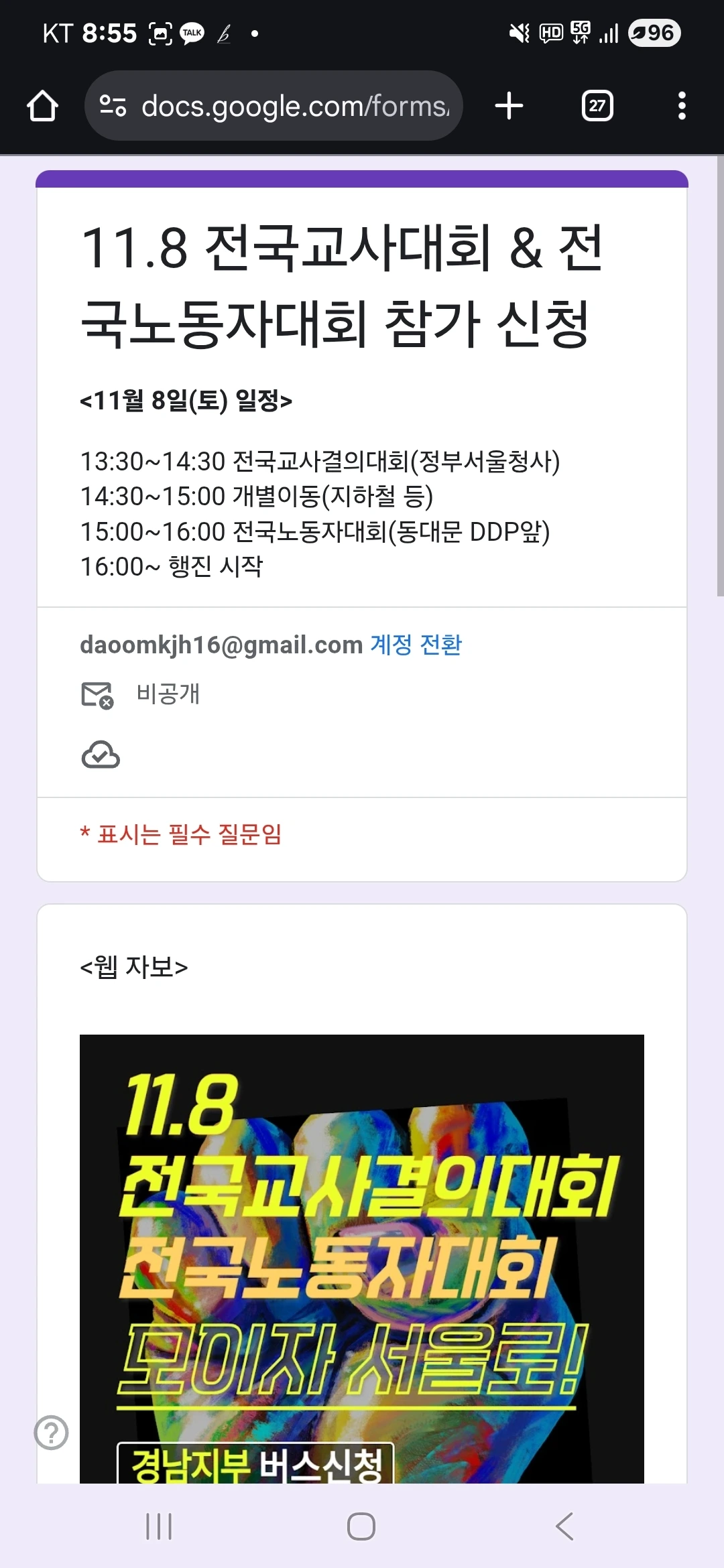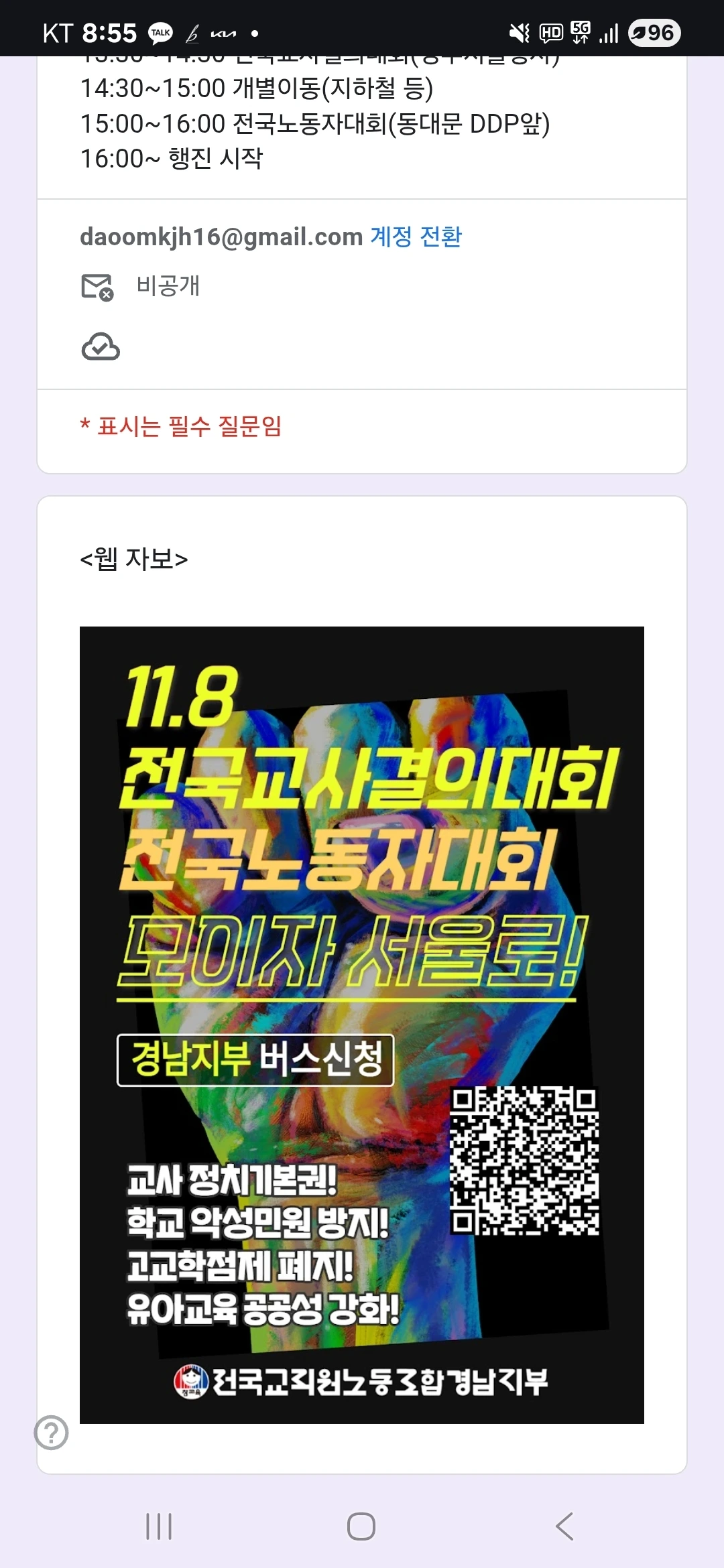 8월의 폭우로 미뤄졌던 우리의 약속을 이번 토요일에 잇겠습니다. 민주노총 30년, 그리고 전태일 열사의 정신을 기억하며, 기간제교사 차별을 끝내자는 우리의 결의를 다시 묶겠습니다. 버스가 고속도로를 달리듯, 우리의 발걸음도 서로의 어깨를 기대어 서울로 향할 것입니다.