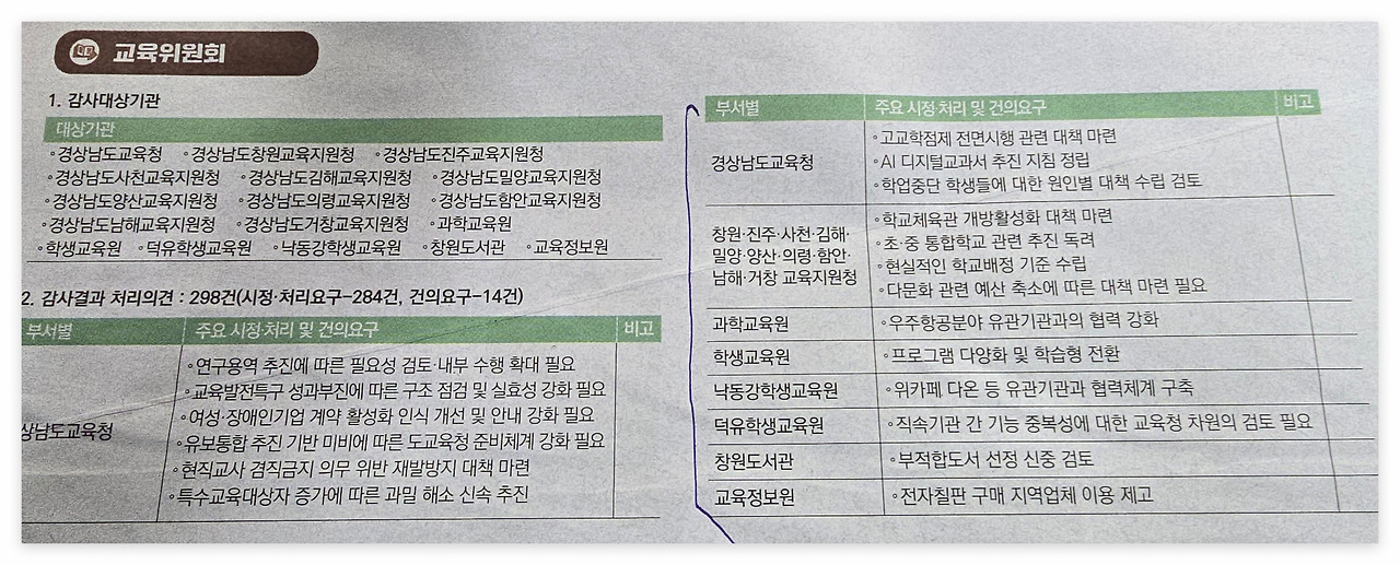 최근 경남교육청 감사자료에 따르면, 올해 총 298건의 지적이 나왔다.