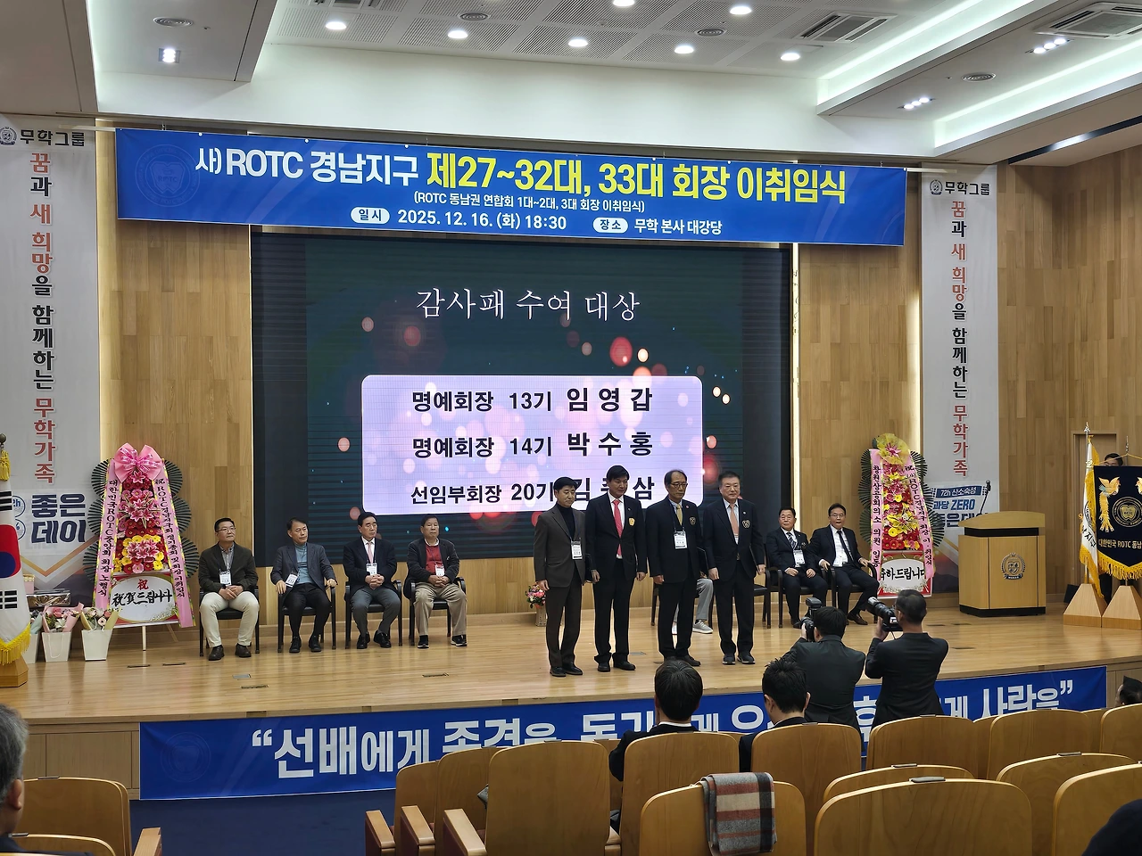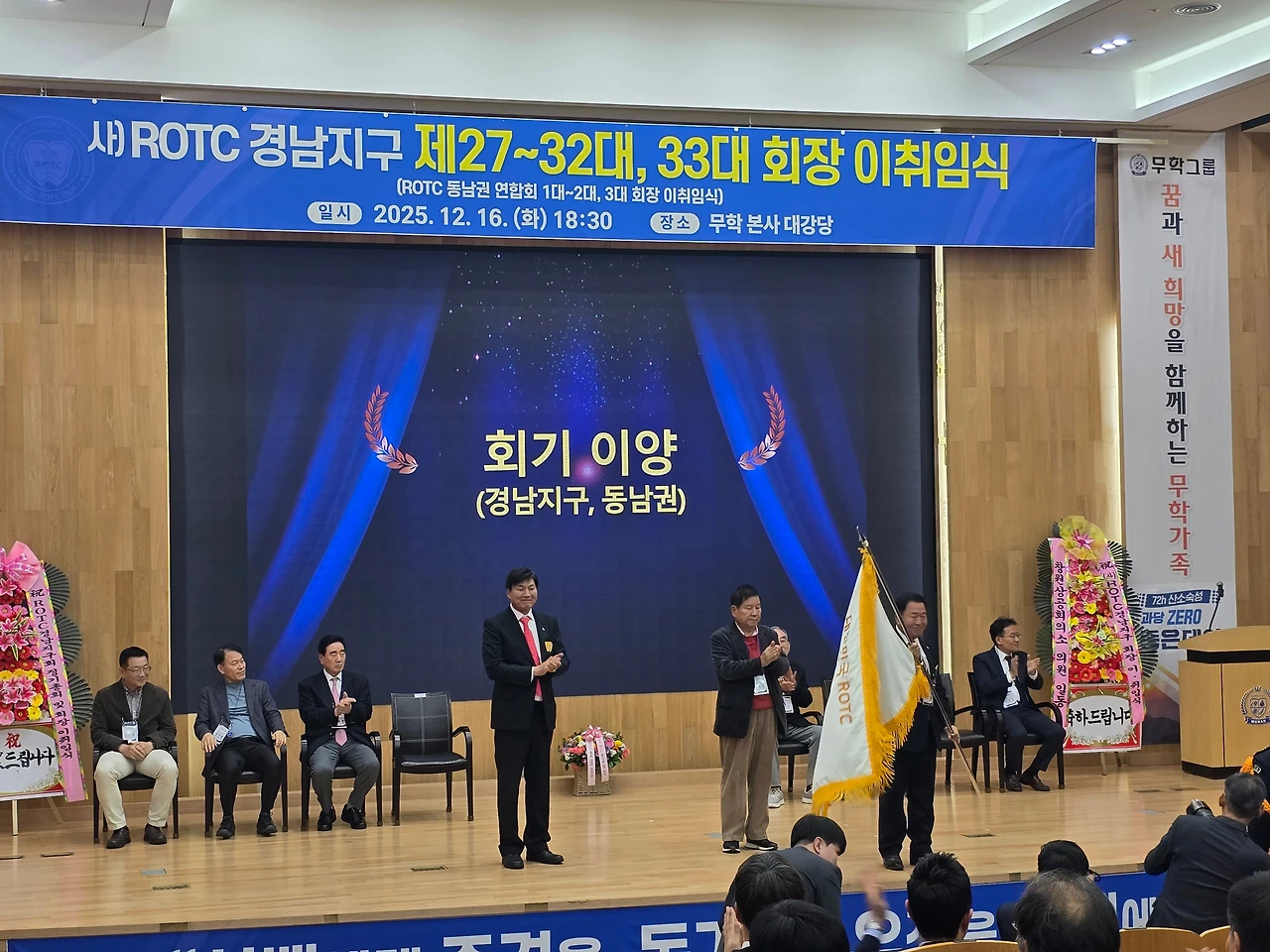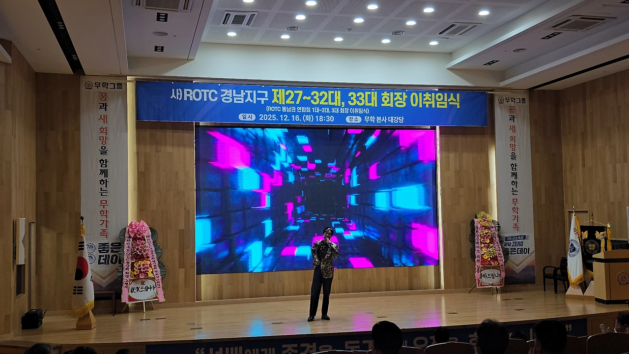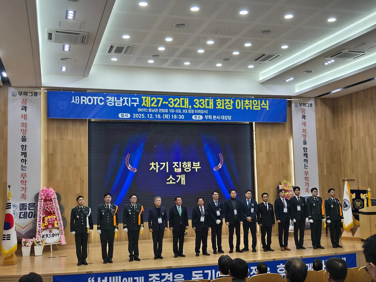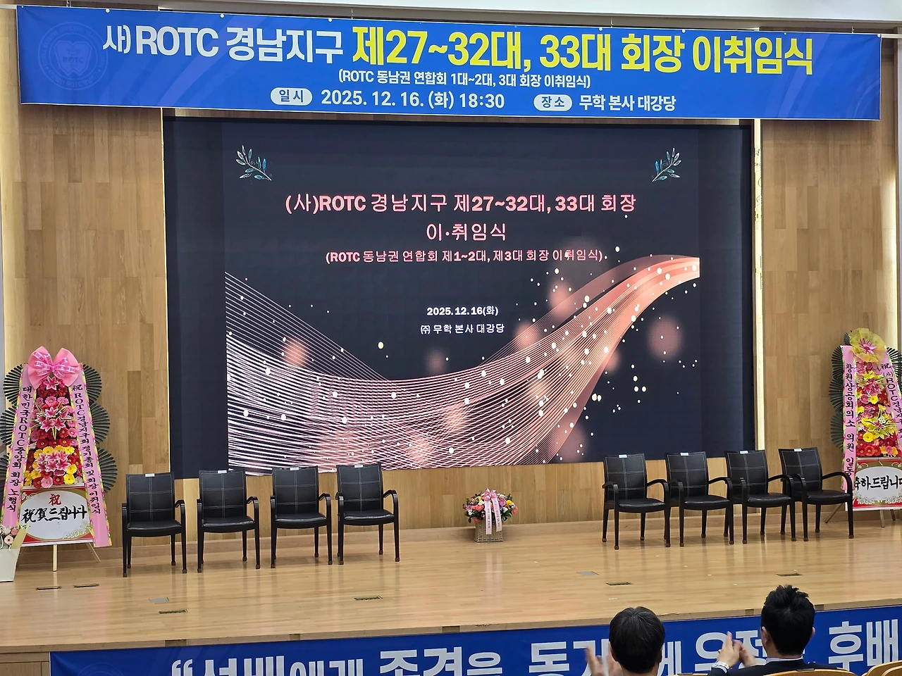 2025년 12월 16일 저녁, 무학 본사 대강당에서 열린 (사) ROTC 경남지구 회장 이·취임식은 바로 그런 자리였습니다. 화려함보다 단정함이, 말보다 태도가 먼저였고, 세대는 달라도 하나의 이름으로 서로를 부르는 힘이 무대와 객석을 잇고 있었습니다.