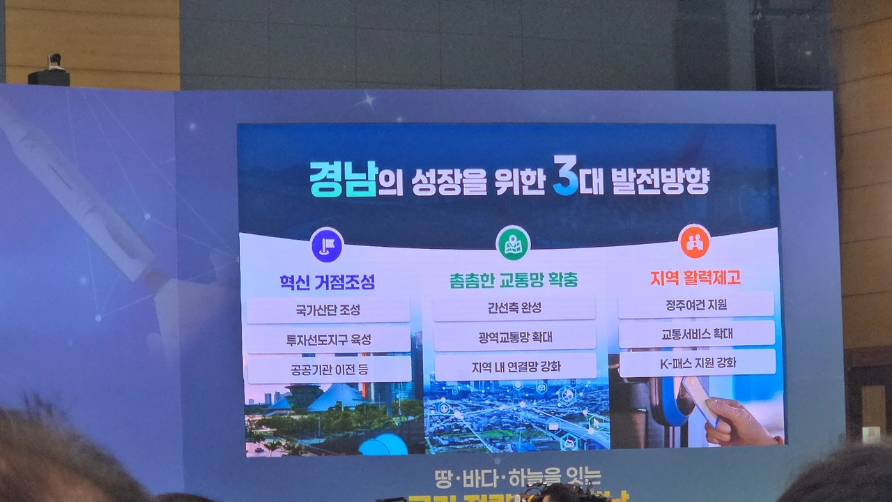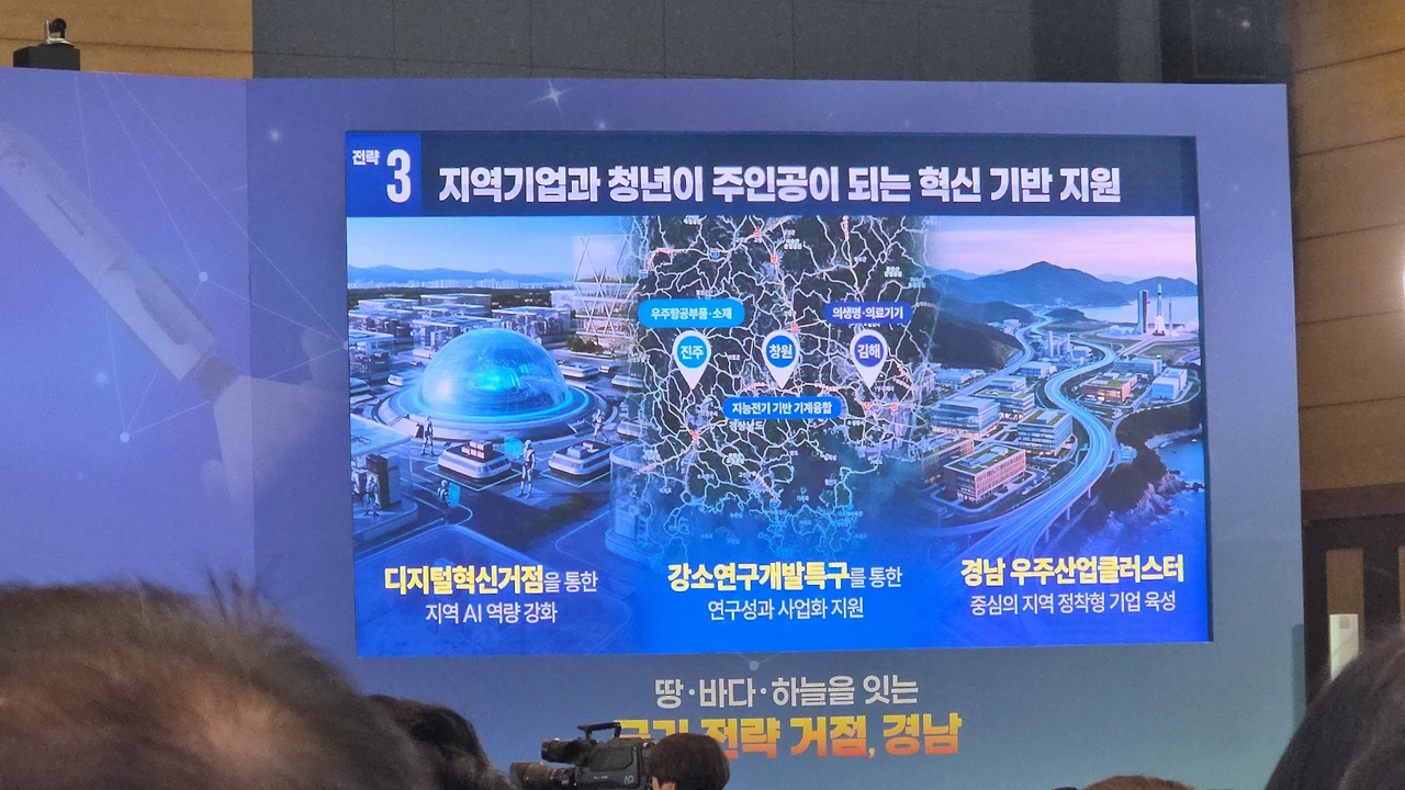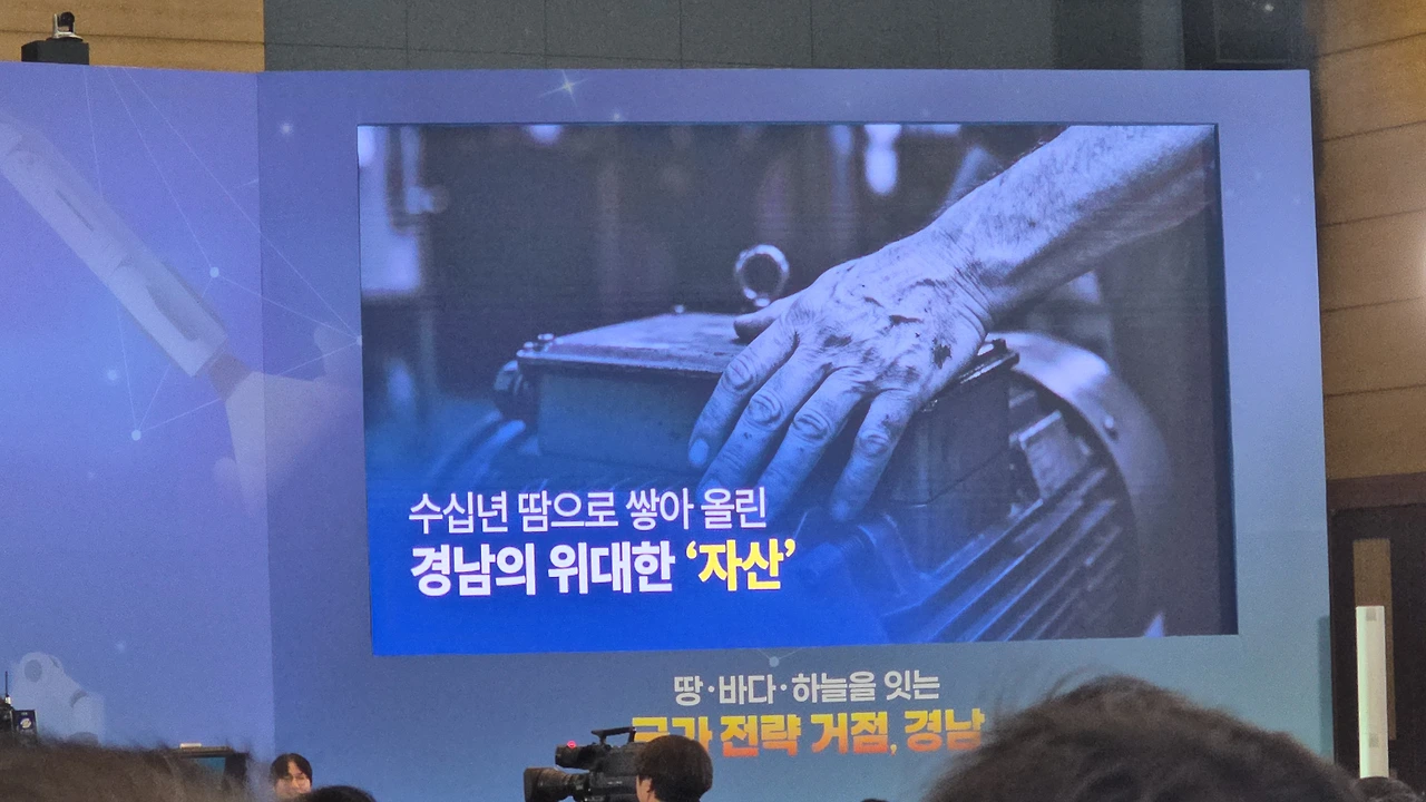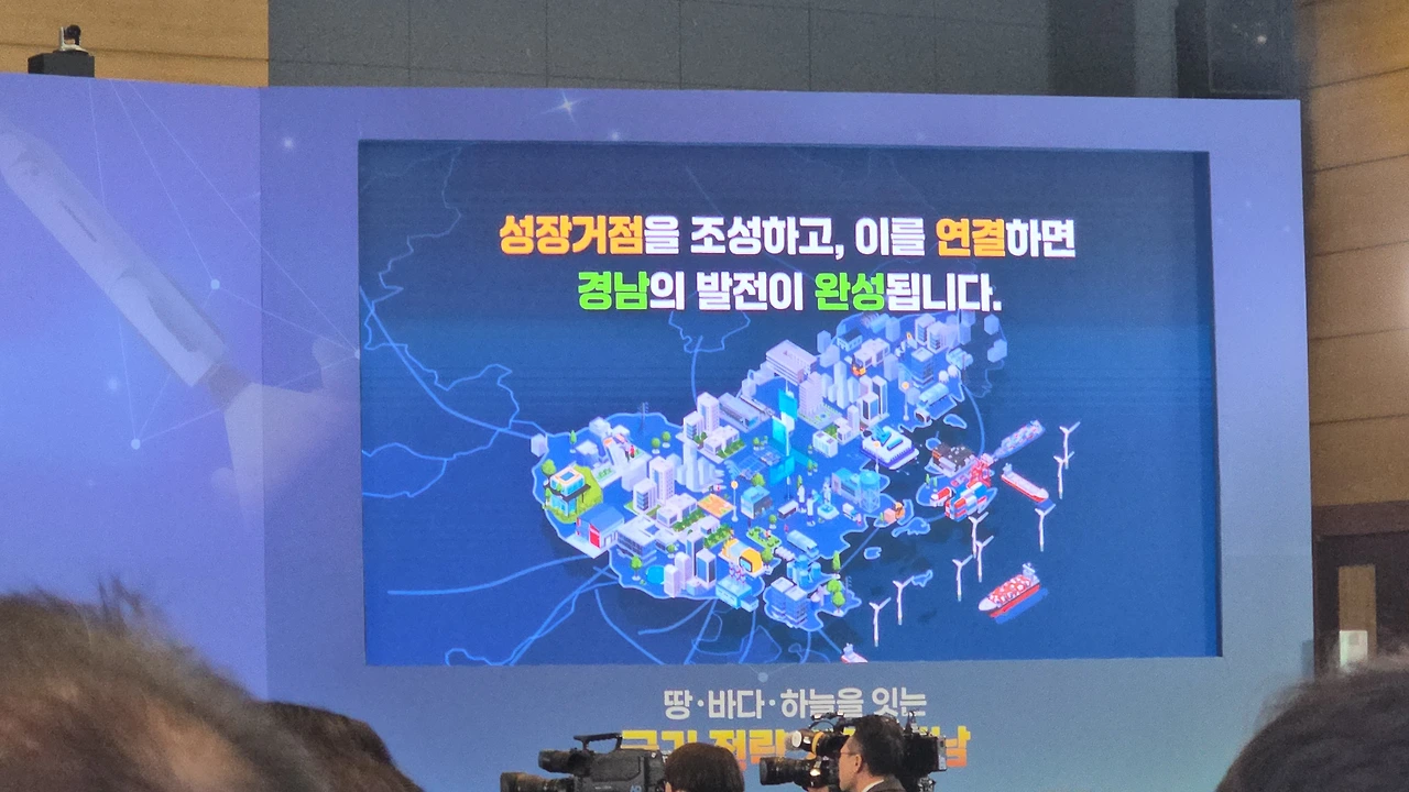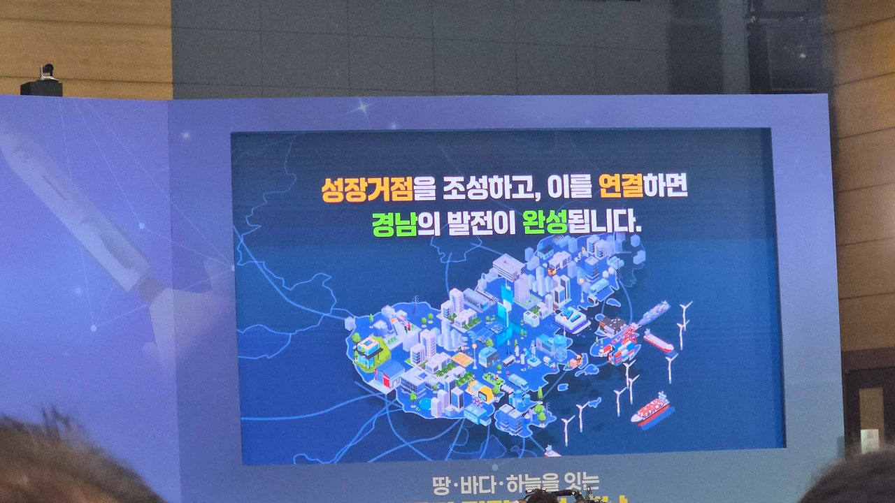 “국가 전략 거점, 경남”이라는 거대한 문장이 떠 있었고,