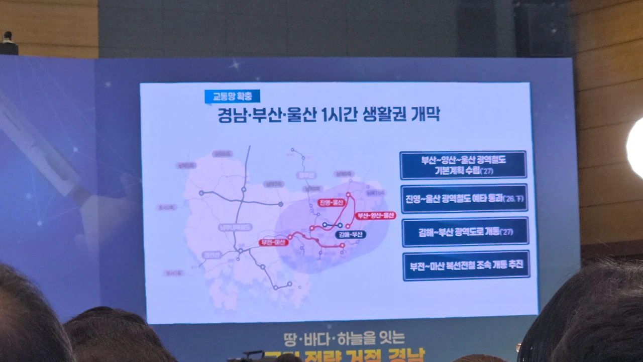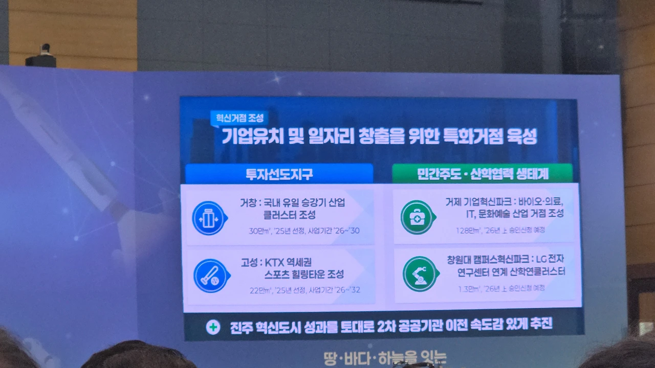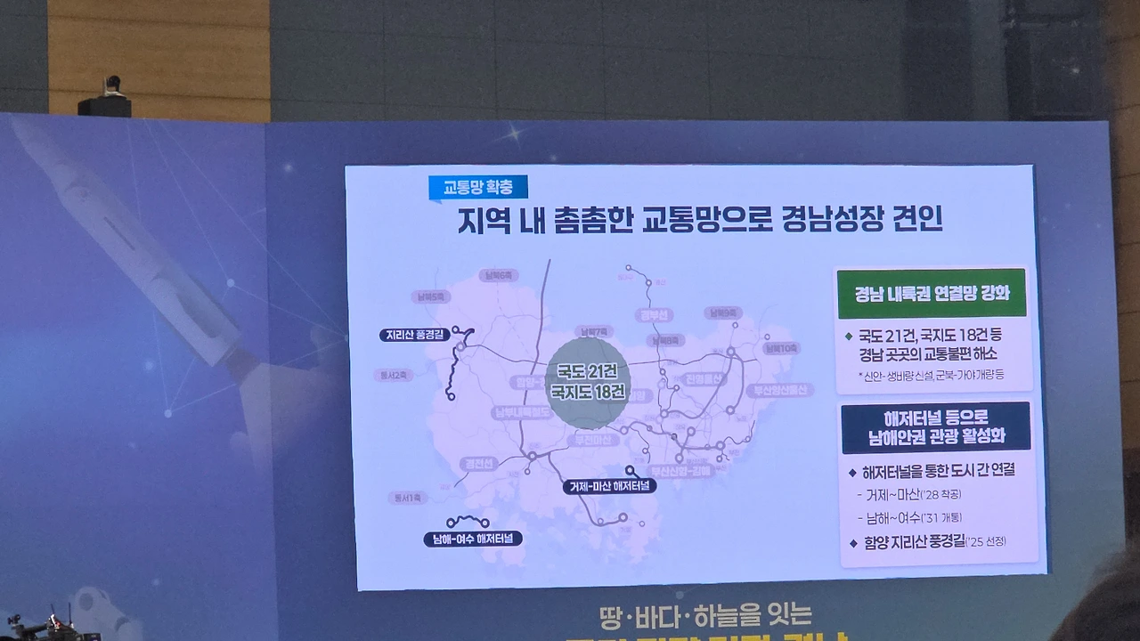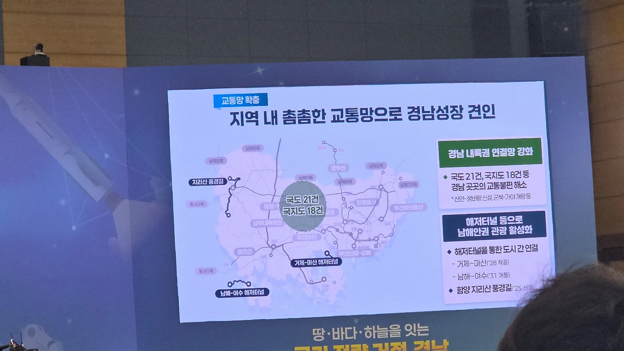 “국가 전략 거점, 경남”이라는 거대한 문장이 떠 있었고,