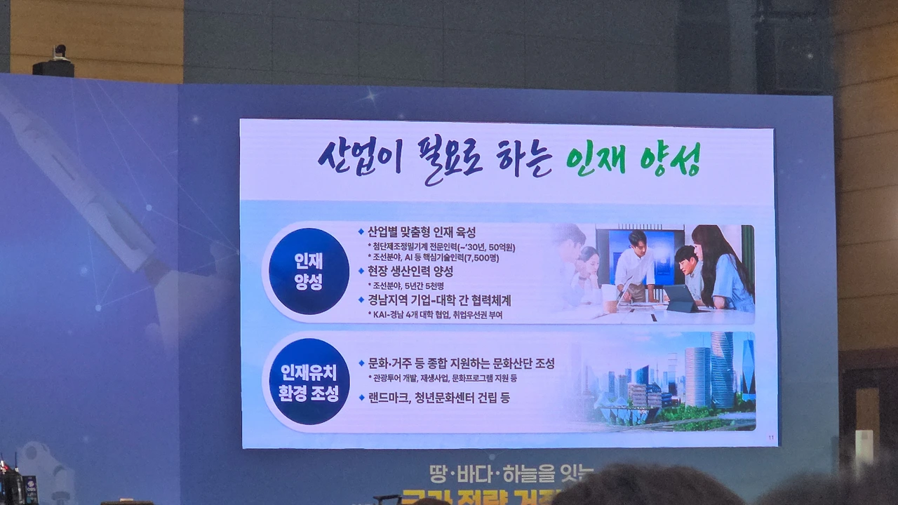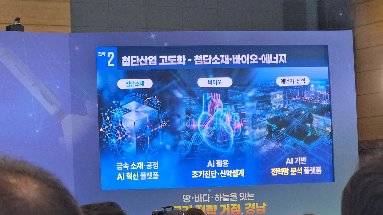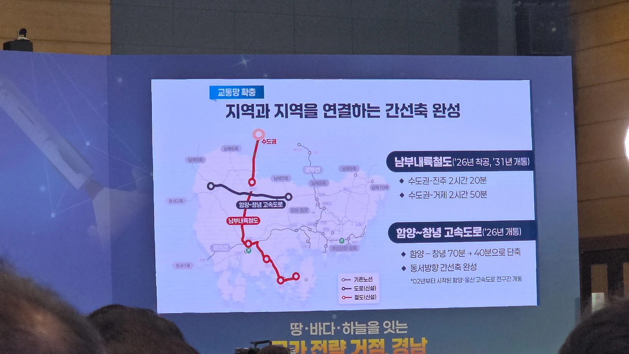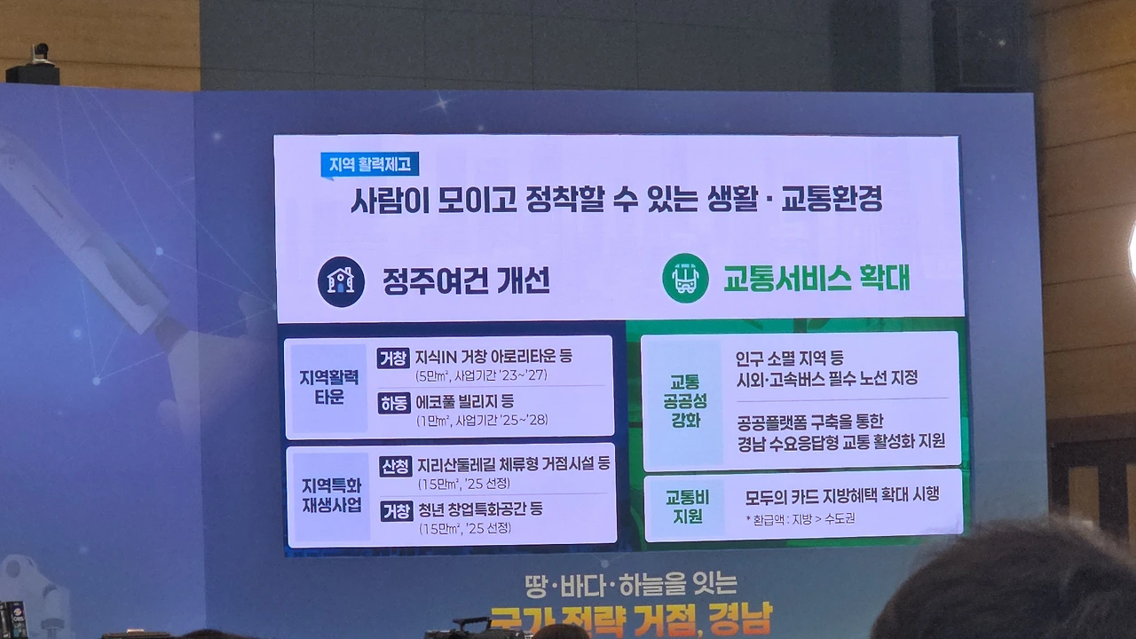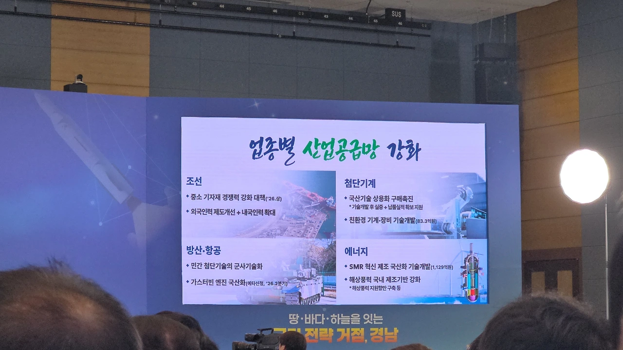 “국가 전략 거점, 경남”이라는 거대한 문장이 떠 있었고,