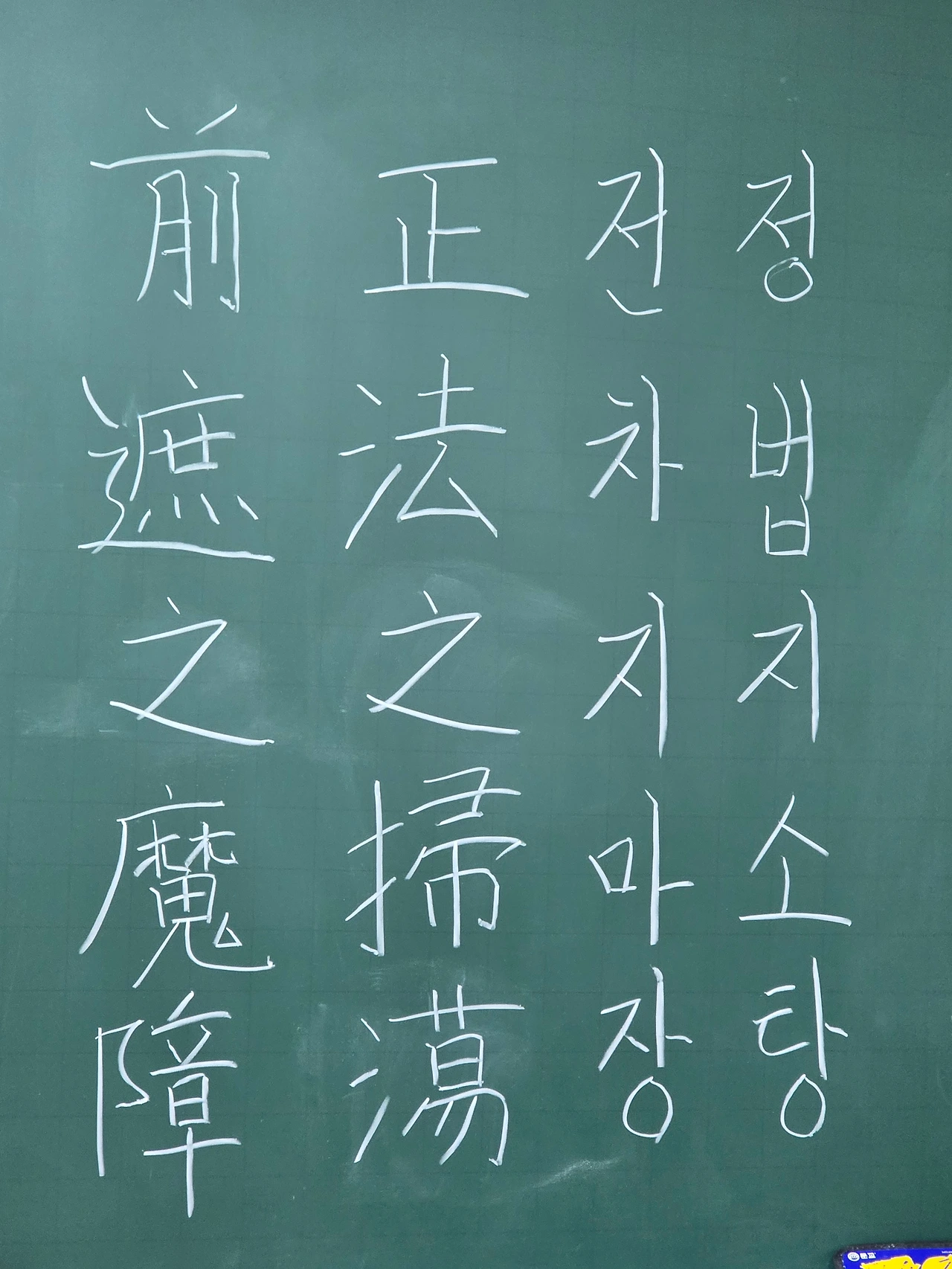 앞을 가로막는 마장을 바른 법(正法)으로 깨끗이 쓸어내라는 가르침.