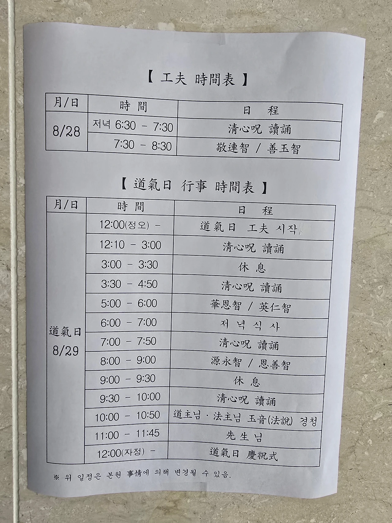 (일정은 현장 사정에 따라 변동 가능)