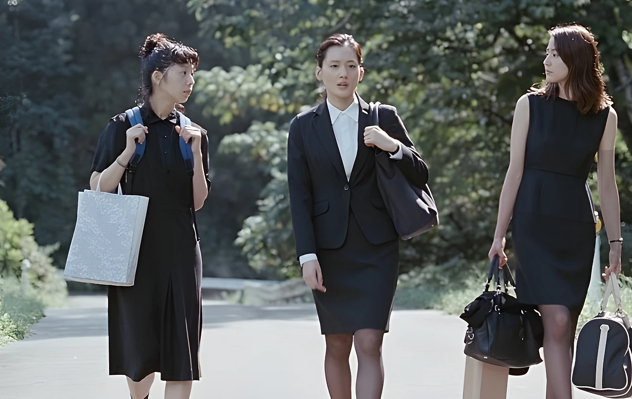 세 자매 사치, 요시노, 치카는 장례식장으로 향하고, 그곳에서 이복 자매 스즈를 만난다.