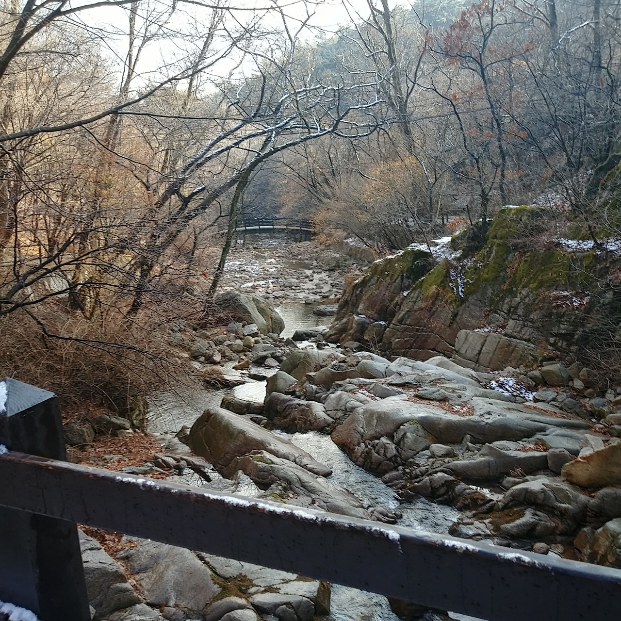 저 다리를 건너면 등산코슨데 제법 가파르다. 누가 북한산을 순하다고 했는지 모르지만 겪어보면 만만치가 않다.