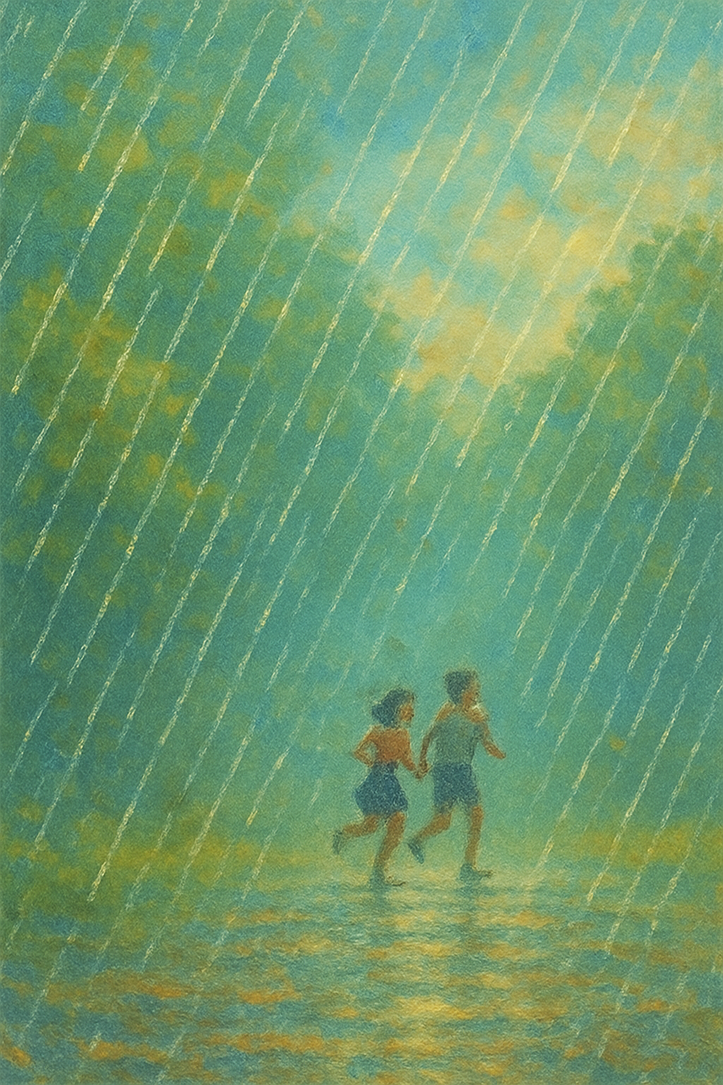 ai한테 빗속의 남녀를 그려달랐더니 의외의 신선한 그림을 그려주었다.