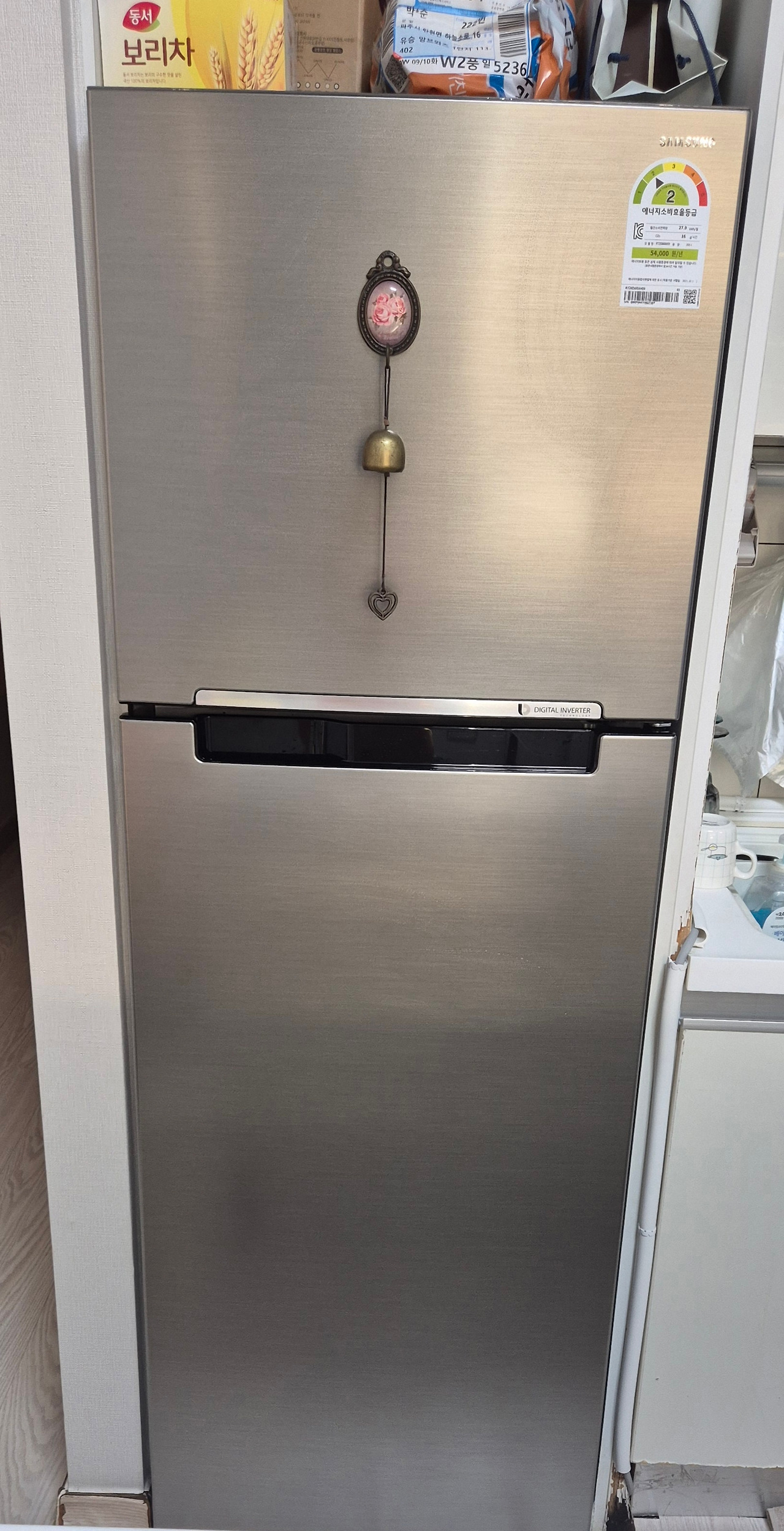 그리고, 이틀만에 새 냉장고가 왔다. 주문할땐 회색이라고 해서, 전체적으로 아이보리, 베이지 톤인 집에 맞을까 은근 걱정, 실망했는데 다행히 매트하고 어번한 실버색이 와서 만족했다. 문제는 예전거보다 쪼매 더 크다는...다시말해 코끼리를 쑤셔 넣는짓을 계속 해야 한다는...