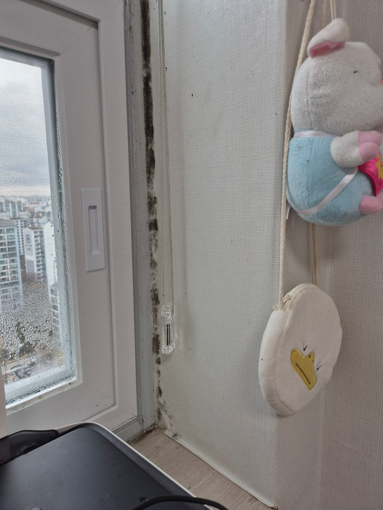 창문 벽에 세로로 죽 늘어선 곰팡이!