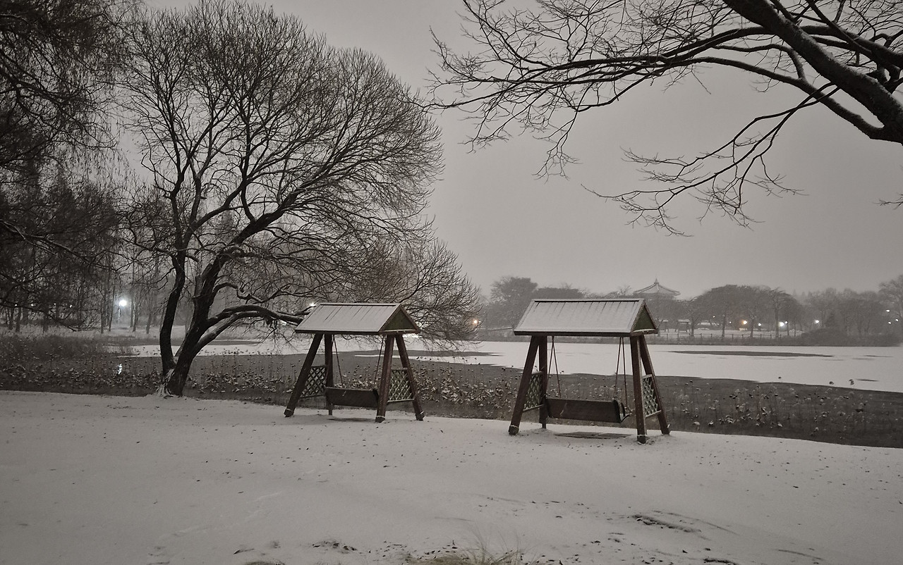 나야 눈맞이에 정신이 없었지만 계속 날아오는 안전문자는 결빙된 도로상황을 여실히 보여주었다. 8중 추둘...드디어 겨울이 왔구나 하는 생각.