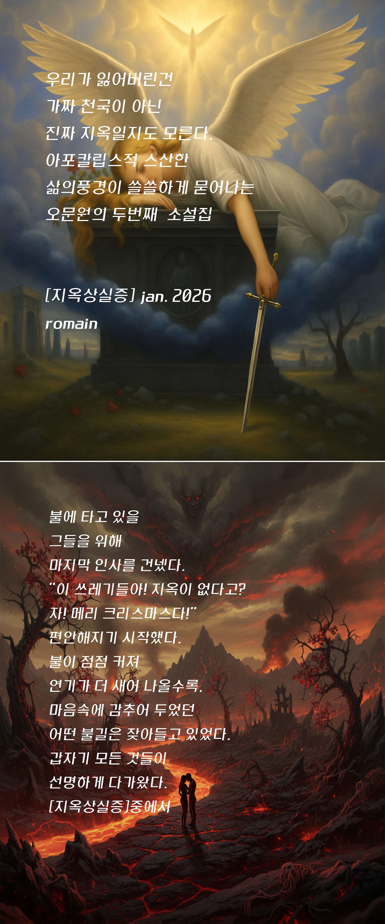 eBook 지옥상실증 | 아포칼립스적 어둠과 도약을 희망하는 인간의 열망을 독특한 시선으로 전하는 신예 오문원의 두번째 작품집. 전작 [달에서 날아가지 않는 법에 대하여]가조금은 동화적 구성