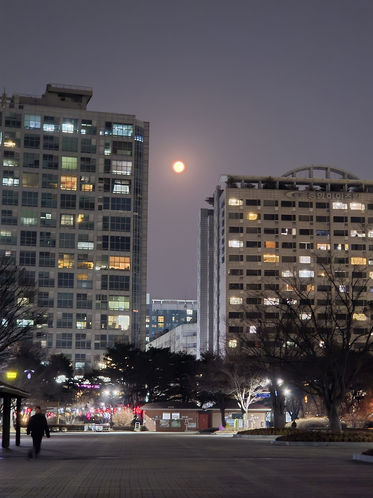 어제도 역시 개기다가 늦은 운동을 나갔는데 달님이 오피스텔 건물사이에 수줍게 떠있어 한장 찍었다.