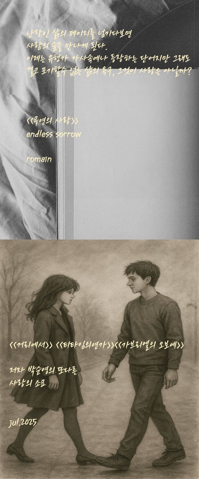작가의 말처럼 사랑 이야기는 우주의 섭리를 관통하고픈 작가의 선택적 도구일수 있다.
