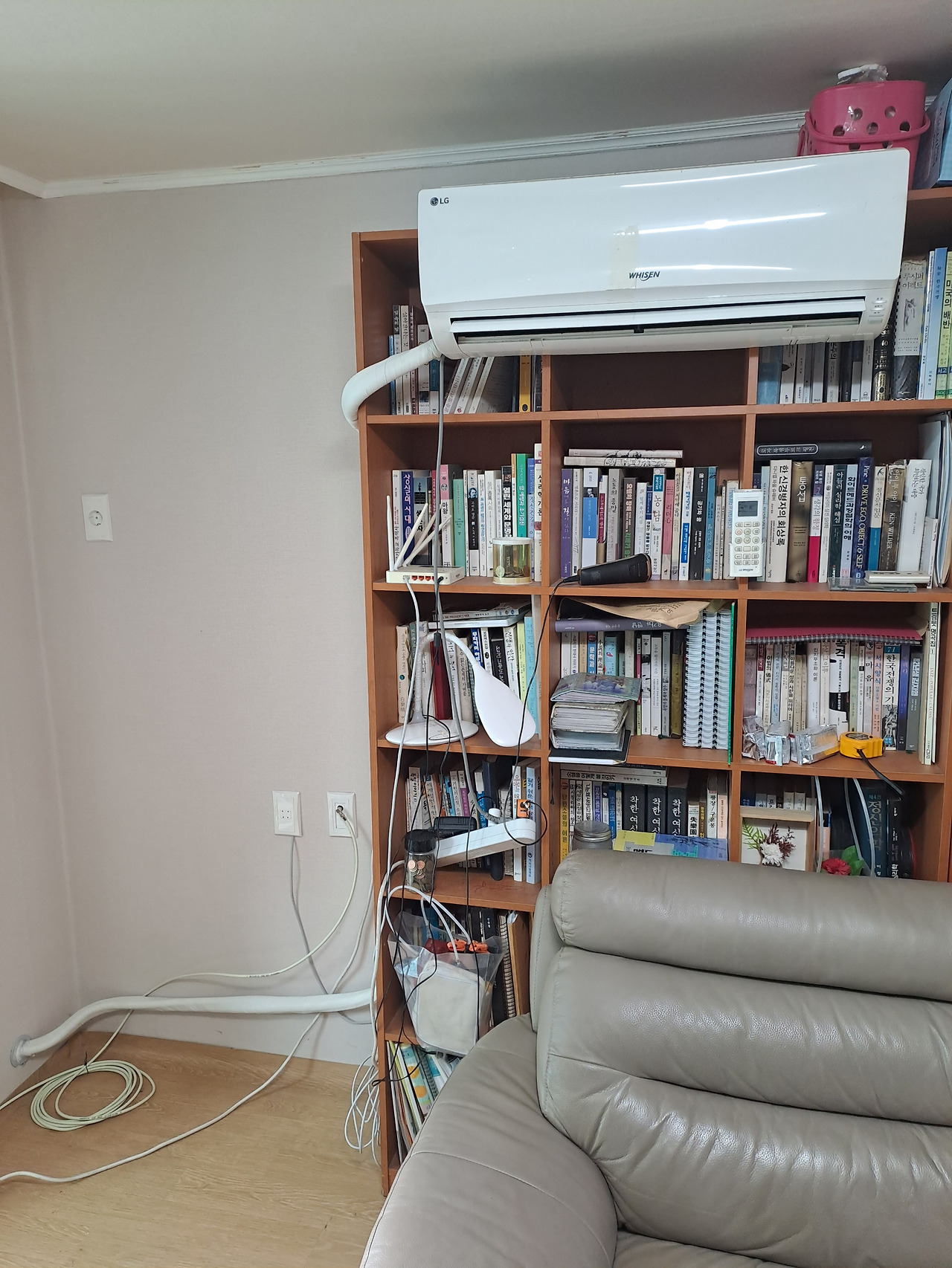 저렇게 책장에 매단 에어컨을 보니 사고의 전환이란게 소소한 즐거움을 선사한다는 걸 느낀다.