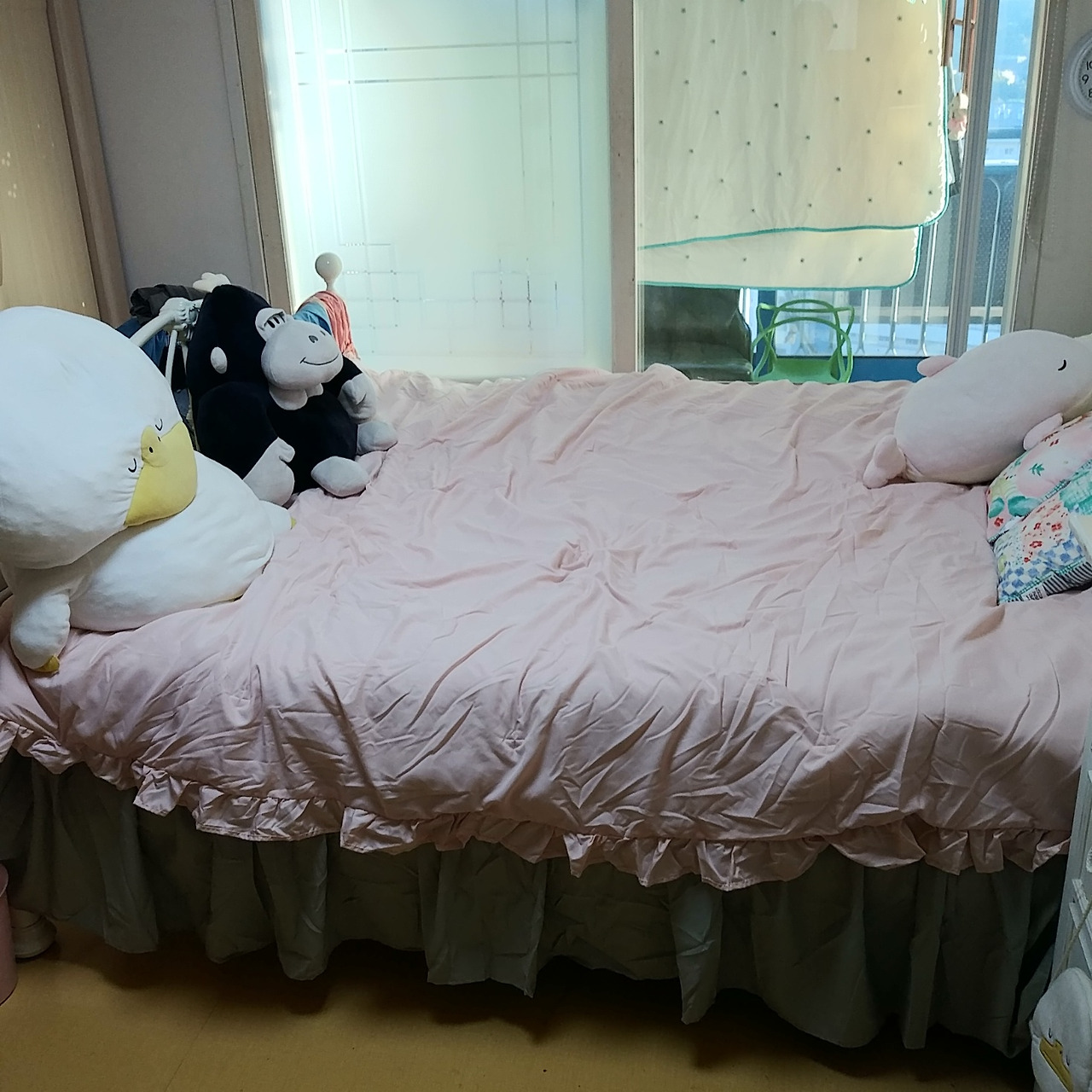 저 커다란 흰 인형 '대굴이'에 기대 하루종일 뒤척임...ㅎ 영 이상한 이번 베딩...ㅋ